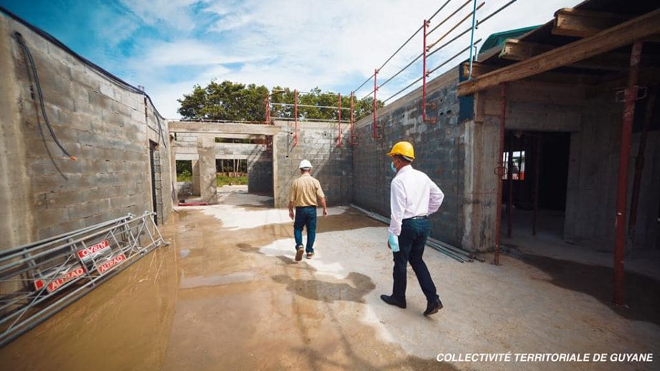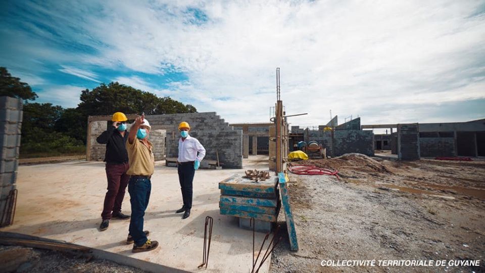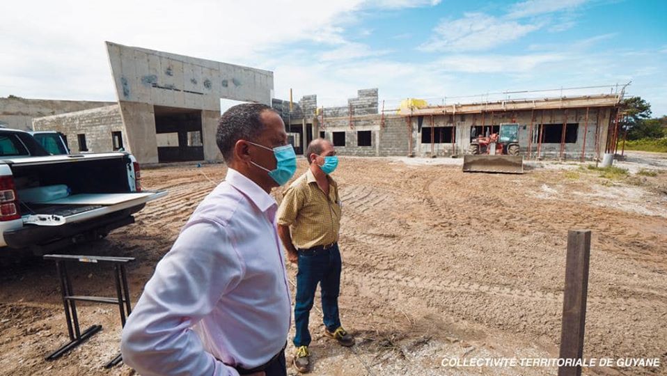 Ce vendredi 29 mai 2020, Rodolphe Alexandre, président de la Collectivité Territoriale de Guyane (CTG), a tenu à se rendre sur le site de construction de la future caserne des sapeurs-pompiers du SDIS-973 à Sinnamary afin de prendre la mesure de l’état d’avancement de ce chantier en présence de Dominique Davenel, gérant de la société BaTiPro, en charge avec son équipe des travaux de gros œuvre.