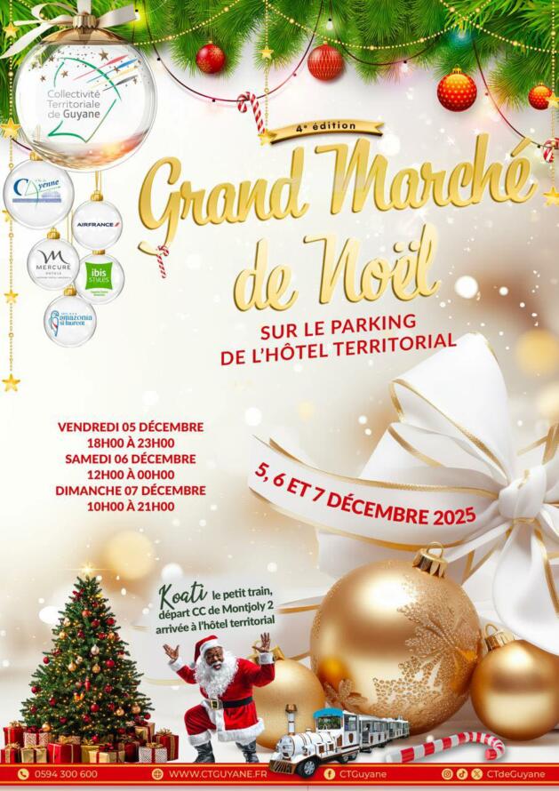 La Collectivité Territoriale de Guyane vous donne rendez-vous les vendredi 5, samedi 6 et dimanche 7 décembre 2025, sur le parking de la CTG, pour plonger dans une ambiance féerique, chaleureuse et locale.