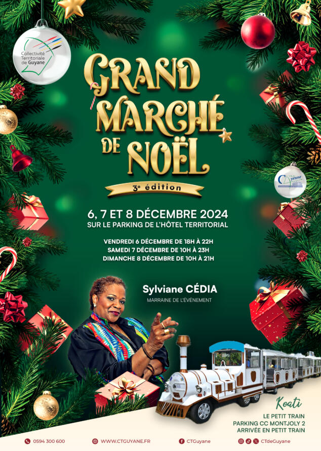 - Un petit train gratuit vous permettra d’accéder au marché de Noël depuis le centre commercial de Montjoly 2.