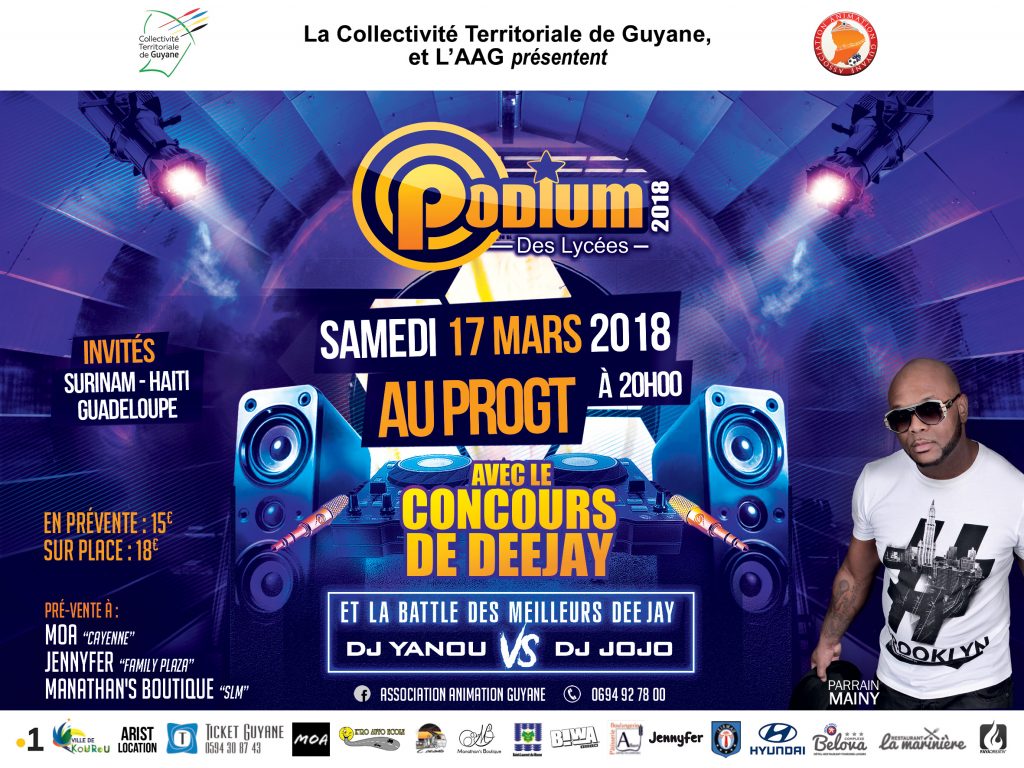 Ce samedi 17 Mars 2018, le Podium des lycées, organisé par l’Association Animation Guyane en partenariat avec  la Collectivité Territoriale de Guyane, revient au Palais Omnisports Georges Théolade de Matoury à 20 h.