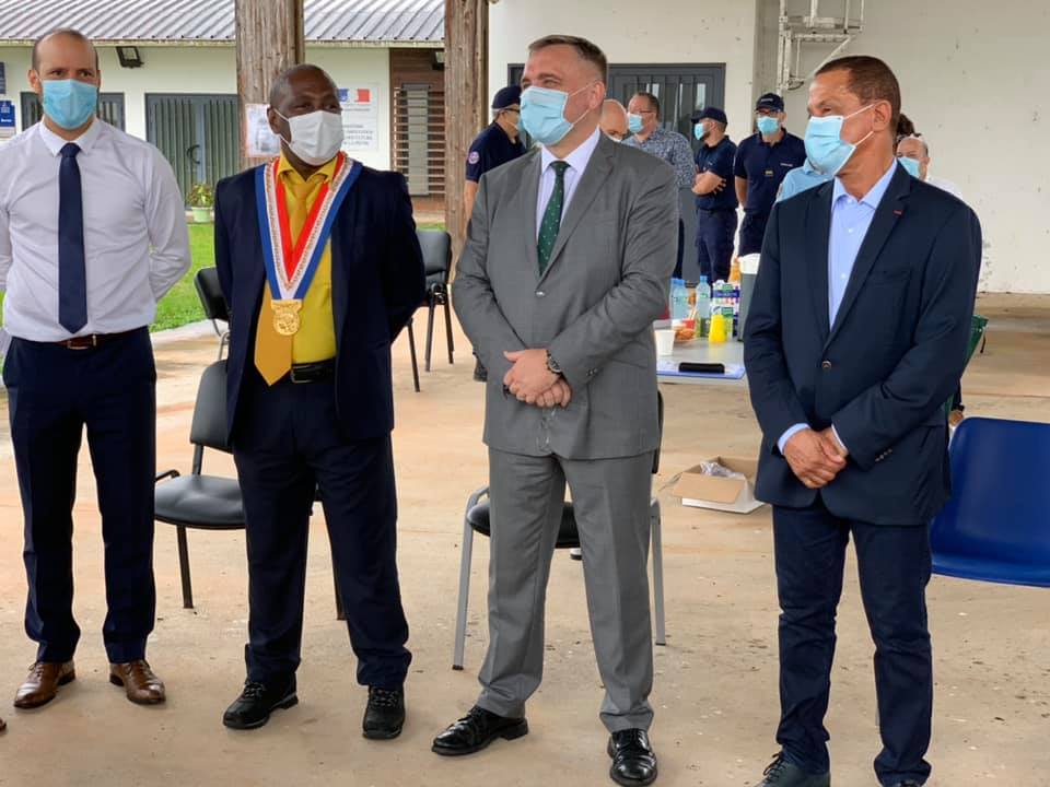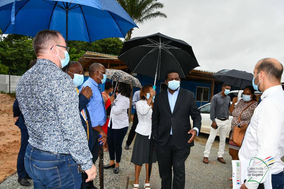 Accompagné de Thierry Queffelec, préfet de région, d’Alain Ayong Le Kama, recteur de la région académique de Guyane, de Georges Elfort, maire de la commune de Saint-Georges de l’Oyapock, de Frédéric Bouteille, sous-préfet délégué aux communes de l’intérieures et de Léda Mathurin, conseillère territoriale, la visite avait pour objectif de faire le point sur les travaux qui se poursuivent malgré la crise sanitaire et les difficultés liées au climat.