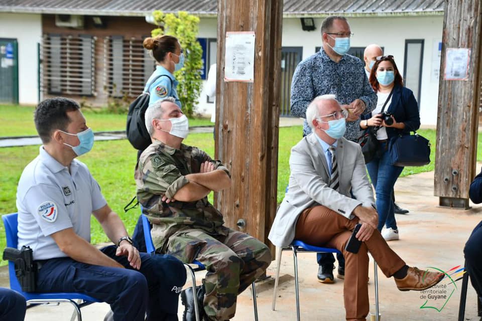Participaient également à cette réunion : Georges Elfort, maire de la commune de Saint-Georges de l’Oyapock, Frédéric Bouteille, sous-préfet délégué aux communes de l’intérieures, Samuel Finielz, procureur de la république, Xavier Buisson, commandant supérieur des forces armées en Guyane, Léda Mathurin, conseillère territoriale et les services de la police nationale, de la police aux frontières, de la gendarmerie nationale, des douanes, de la Police Civile du Brésil et de la Police Fédérale du Brésil.