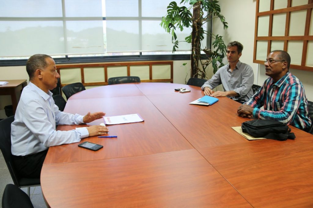 Ce lundi 12 mars 2018, le Président de la Collectivité Territoriale de Guyane (CTG), Rodolphe Alexandre recevait le président de l’APROSEP-Guyane (Association Profession Sport et Éducation Populaire d’Élèves de l’Enseignement Libre), Jean Cesto accompagné de son Directeur, Jean-David Poquet à l’hôtel territorial à Cayenne afin de dresser un point d’étape sur les activités de l’association aborder différents sujets portant notamment sur l’appui à la vie associative, la formation, l’emploi et le développement économique en particulier le projet d’Atelier Chantier d’Insertion (ACI) de l’APROSEP Guyane prévu dans le bassin de l’Est guyanais sur la commune de Camopi.