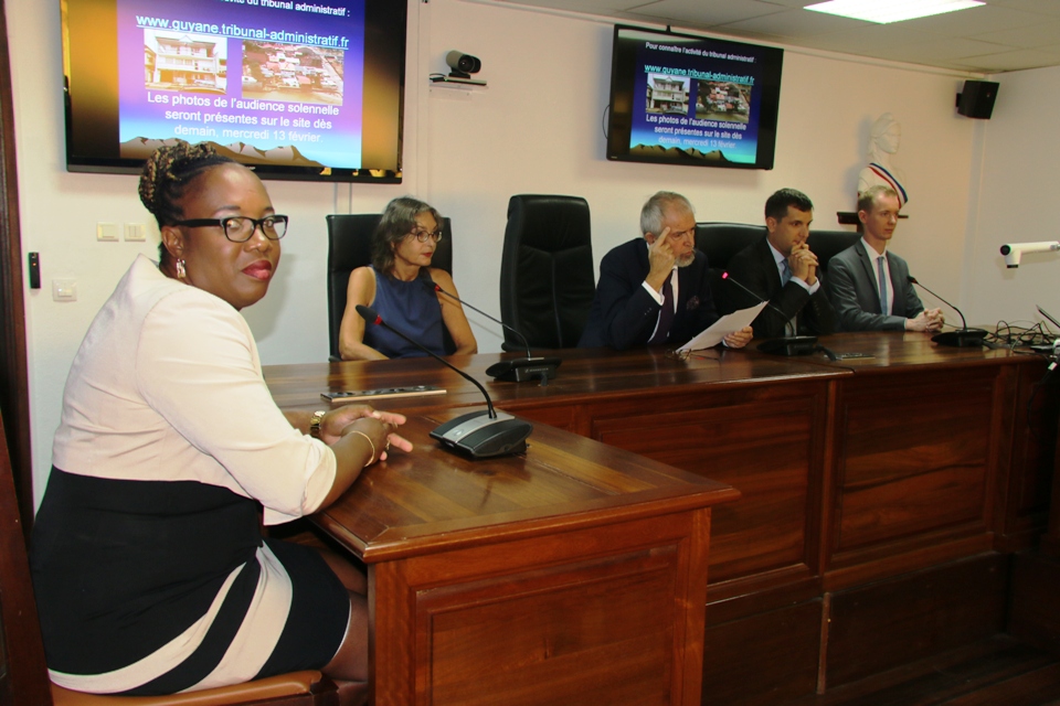 Au cours de cette séance, le Président du Tribunal Administratif a présenté quelques statistiques relatives aux activités de cette juridiction durant l’année écoulée. Il s’agissait de se pencher sur l’avenir du Tribunal Administratif et notamment d’apporter des réponses aux difficultés rencontrées dans l’accès aux droits dans les communes les plus éloignées. Enfin, d’ici la fin de l’année, une audience du Tribunal Administratif devrait se tenir dans l’Ouest-guyanais à Saint-Laurent du Maroni.