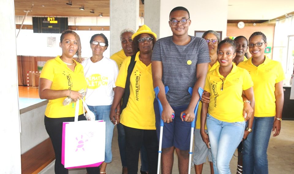 A l’occasion des 12 heures du téléthon organisées par la Collectivité Territoriale de Guyane (CTG) en partenariat avec l’Association Française contre les Myopathies (AFM), la population était conviée au Hall Sportif Kévin Séraphin à Cayenne pour participer à la Marche de l’espoir et diverses autres manifestations sportives et culturelles (Zumba Gold, Gym douce, Tranpoline, Taï-Chi, Fitness, Triballens, Basket-ball, Football, Handball, marche sportive, Djokan, Boxe et une prestation du groupe « Mayo de Kaw »), ce samedi 8 décembre 2018 en présence du Vice-Président de la CTG, Jean-Claude Labrador délégué au Sport et Cadre de vie et du Parrain de cette manifestation, Dimitri Trofort, un jeune lycéen atteint de myopathie.