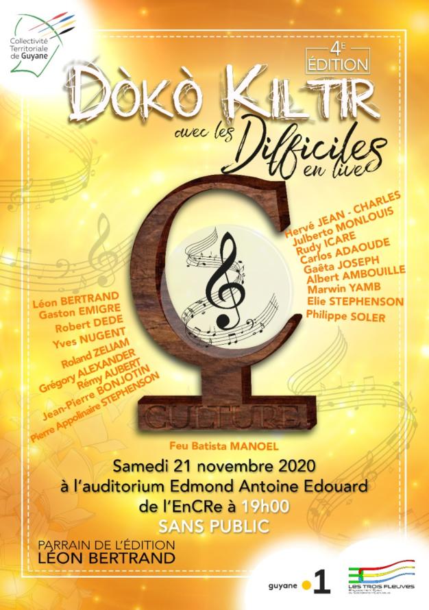 Depuis 2017, La Collectivité Territoriale de Guyane (CTG) honore les hommes de culture lors d’une cérémonie intitulée les “Dôko Kiltir”, qui aura lieu cette année le samedi 21 novembre 2020.
