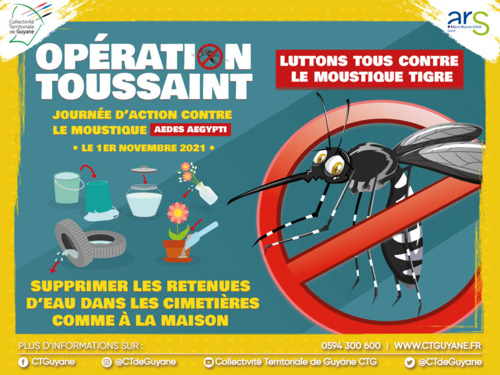 La Collectivité Territoriale de Guyane a en charge, la lutte anti-vectorielle et de démoustication du territoire afin de lutter contre la prolifération des moustiques vecteurs de maladies. Chaque année, plus de 6 millions € sont investis par la CTG pour protéger les Guyanais des maladies transmises par les moustiques. Fin octobre et début novembre, comme chaque année, la CTG organise l’Opération Toussaint afin de sensibiliser la population.