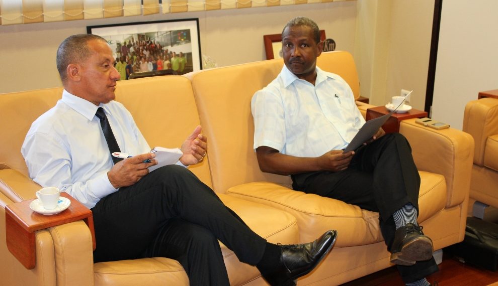 Ce lundi 17 octobre, le Maire de Saint-Georges de l’Oyapock, Georges Elfort accompagné de l’un de ses adjoints Maurice Juniel, rencontrait le président de la Collectivité Territoriale de Guyane, Rodolphe Alexandre. L’objectif de cette rencontre était pour le premier magistrat de présenter ses dernières opérations en cours ainsi que l’état des lieux des investissements à réaliser dans sa commune.