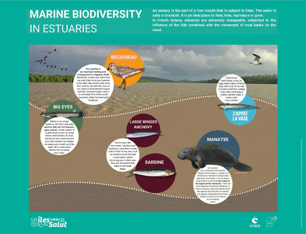 In French Guiana, estuaries are extremely changeable, subjected to the influence of the tide combined with the movement of mud banks on the coast.