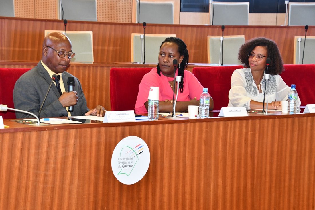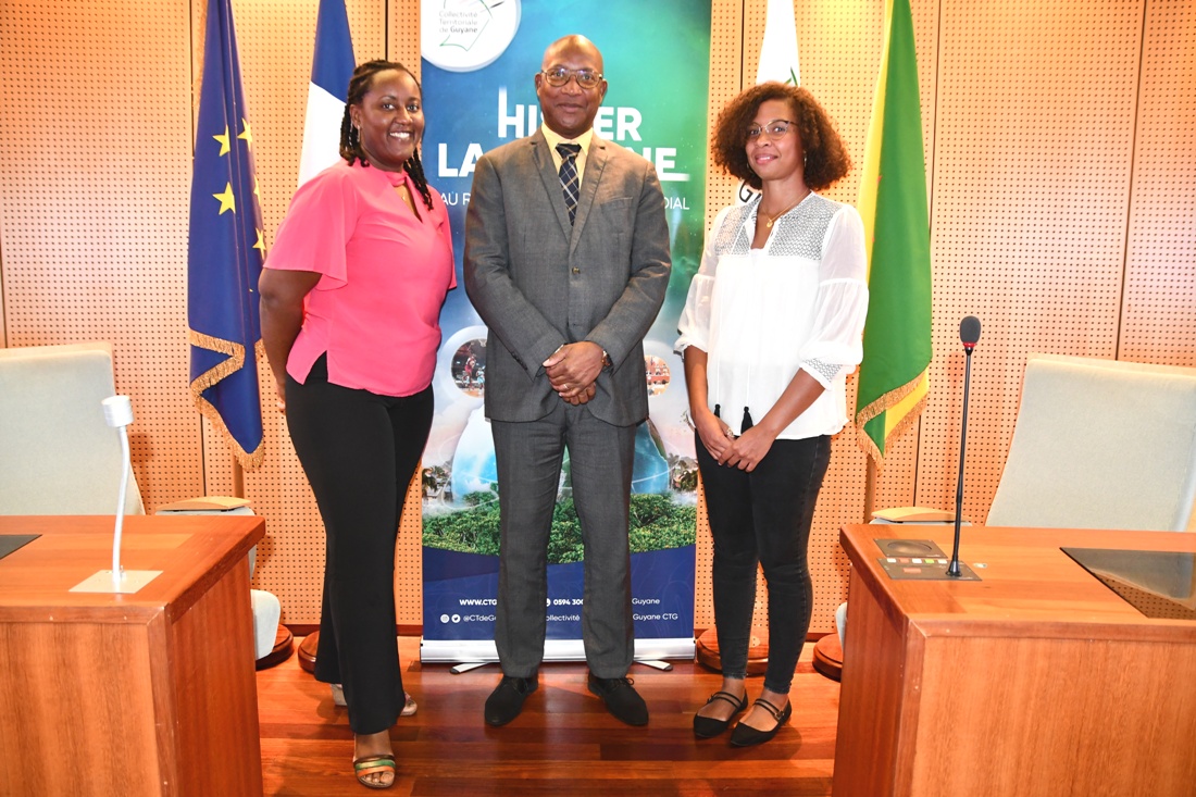 Dans ce cadre ce tenait une rencontre avec Gabriel Serville, président de la Collectivité de Guyane et Patricia Saïd, 4e vice-présidente de la CTG, déléguée à la santé et à la solidarité en présence du docteur Marie-Josiane Castor-Newton, directrice de l’ORSG (Observatoire Régional de la Santé de Guyane) et de nombreux conseillers territoriaux, notamment Philippe Bouba, 5e Vice-président de la CTG, délégué à l’Enseignement supérieur et à la recherche et Patrick Cosset, conseiller territorial, délégué à la Chasse et aux traditions. L’occasion, au terme d’une présentation de leurs parcours, d’échanger avec les deux spécialistes sur le projet du futur CHRU de Guyane, le développement d’une politique territoriale en santé ainsi que sur les grands enjeux en matière de santé et de recherche médicale sur le territoire.