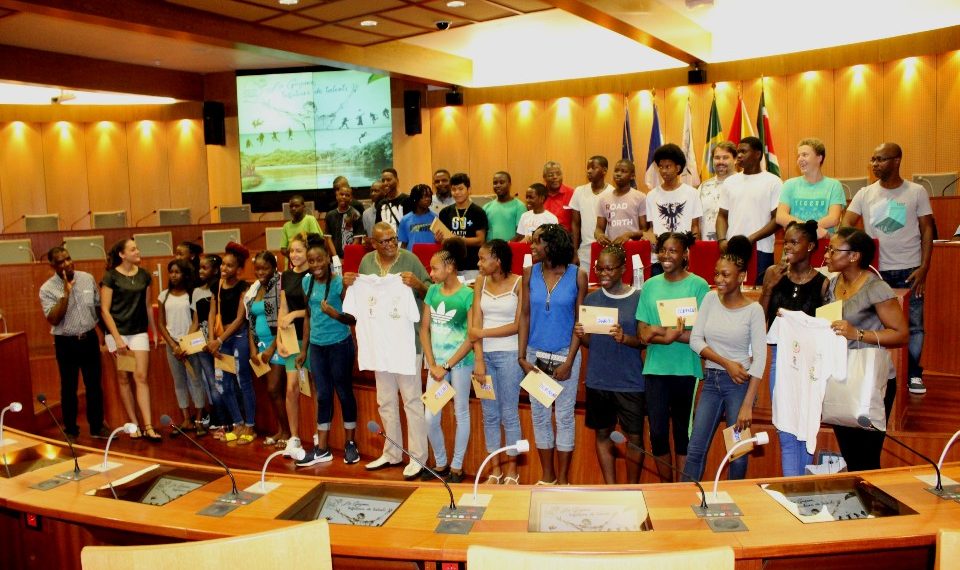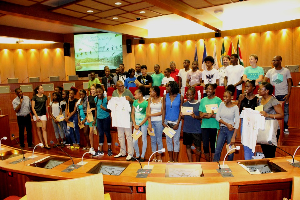 Retenus pour représenter la Guyane aux prochaines Finalités des Inter-comités prévues à Bourges et Orléans, les sélections féminines et masculines de handball des moins de 14 ans ont été reçues ce vendredi 26 mai 2017 à l’Hôtel Territorial à Cayenne, à l’occasion d’une cérémonie planifiée par la Collectivité Territoriale de Guyane en partenariat avec la Ligue Régionale de Handball de Guyane, le Groupement d’Intérêt Public -Guyane Base Avancée- et la Fédération Française de Handball.