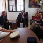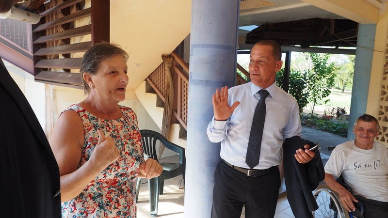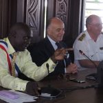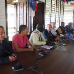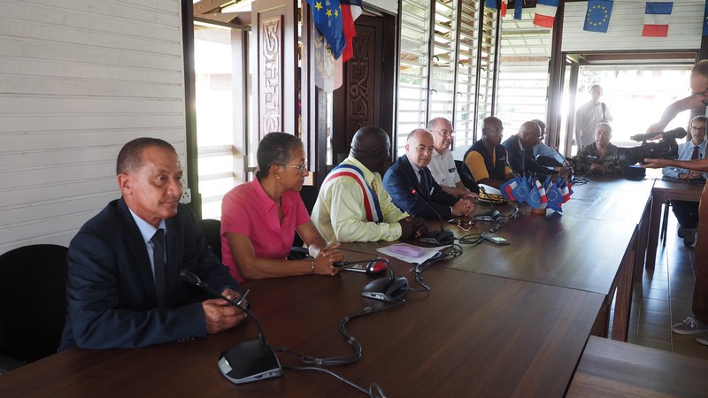 À Maripasoula, après l’accueil à l’aéroport, la délégation s’est rendu en Mairie pour rencontrer le maire de la commune, Serge Anelli, et une partie de son conseil municipal, avant un départ pour une visite de terrain sur le barrage de l’Inini.