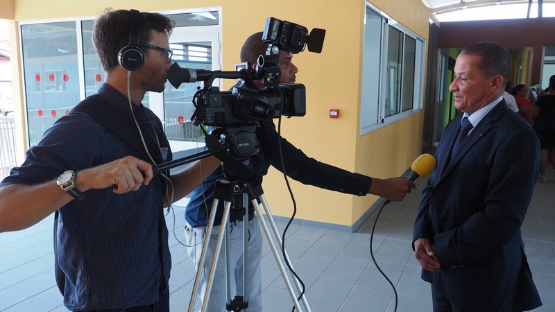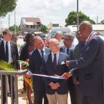 Ensuite, rendez-vous était donné à Mana. Après un accueil républicain en mairie par le Sénateur-Maire de la commune, Georges Patient, où différents sujets ont pu être mis sur la table en présence du Préfet et des parlementaires de Guyane, dont certains que le Président tenait particulièrement à évoquer comme l’insécurité, la pêche illégale ou encore l’orpaillage illégal, la délégation s’est rendue au nouveau Pôle Enfance Jeunesse pour son inauguration.