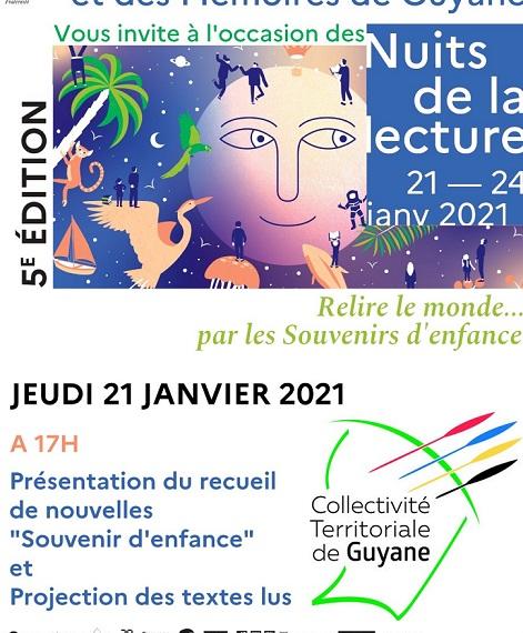 La Collectivité Territoriale de Guyane (CTG) à travers sa Direction Livre et Lecture organise trois temps forts autour du thème « Relire le monde » dans le cadre de la 5è édition des Nuits de la Lecture les jeudi 21, vendredi 22 et samedi 23 janvier 2021.
