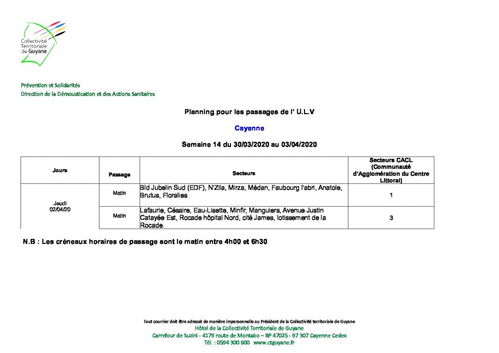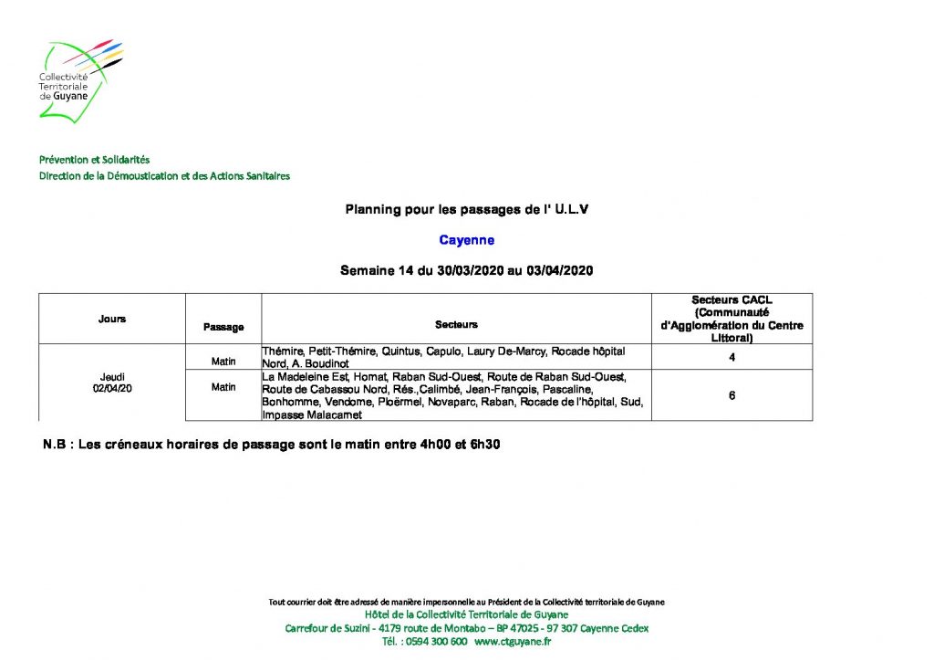 Programmation ULV Rémire Montjoly semaine 15 modifié au 02.04.2020 Programmation ULV Cayenne semaine 15 modifié au 02.04.2020Saint-Laurent sem 14 2020 MARSSaint-Laurent sem 15 2020 MARS