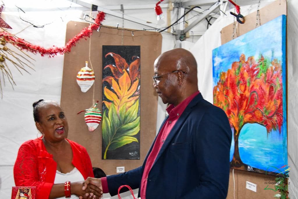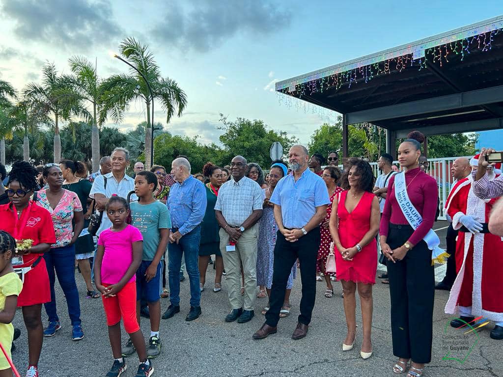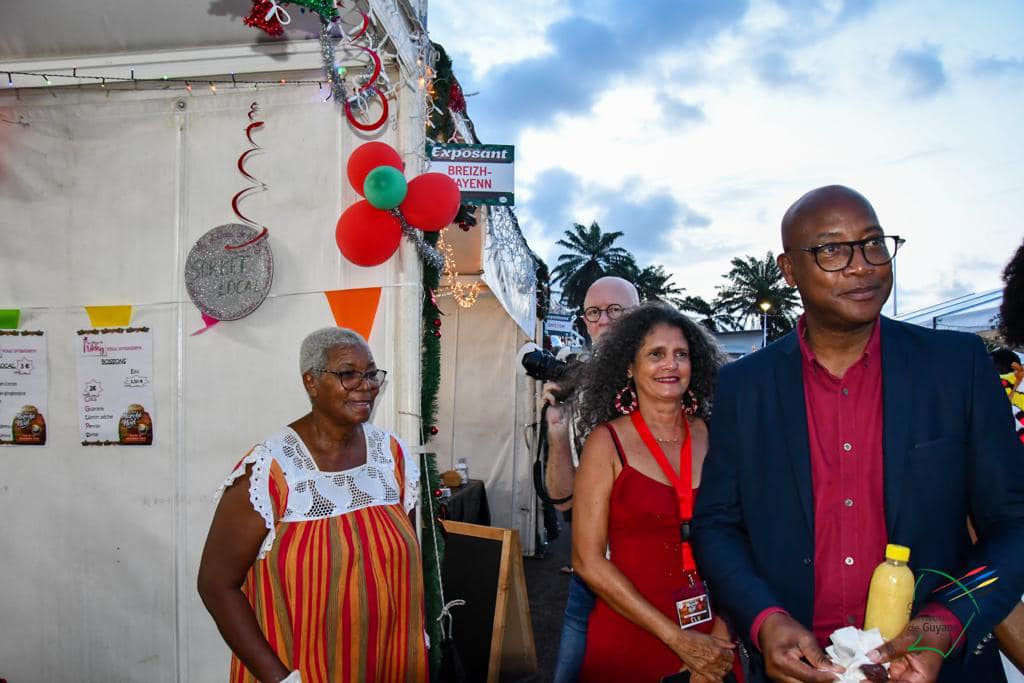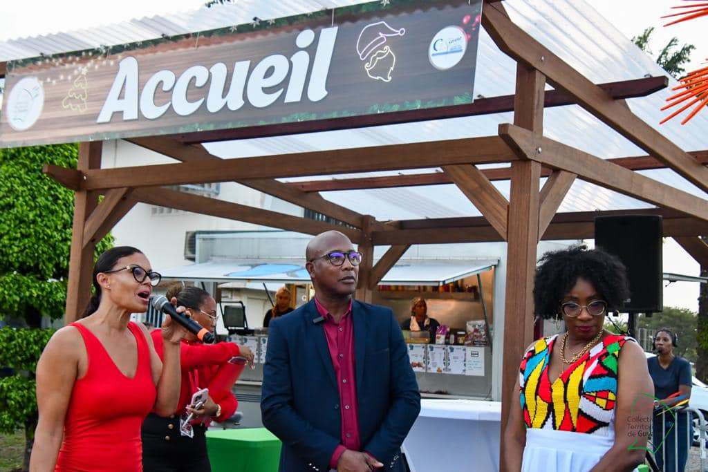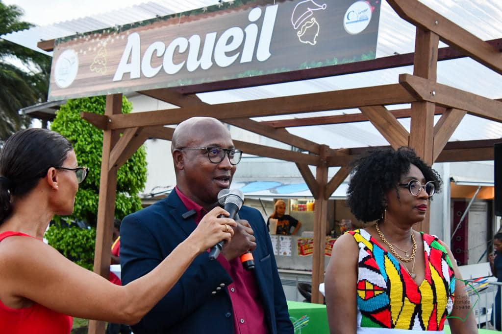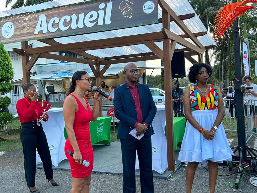 Le Grand Marché de Noël a ouvert ses portes au public, ce vendredi 8 décembre 2023, sur le parking de la CTG. Christiane Barbe, conseillère territoriale déléguée à l’agroalimentaire, Gabriel Serville, président de la CTG, et la première dauphine de l’élection « Miss Guyane 2023 » ont réalisé le traditionnel coupé de ruban, lançant l’ouverture officielle de cette 2è édition.
