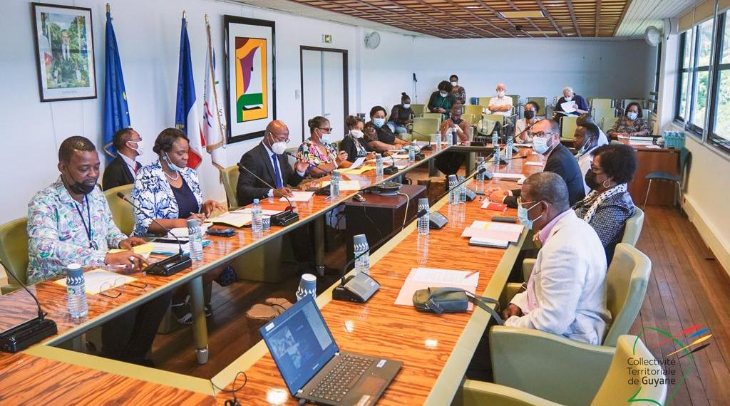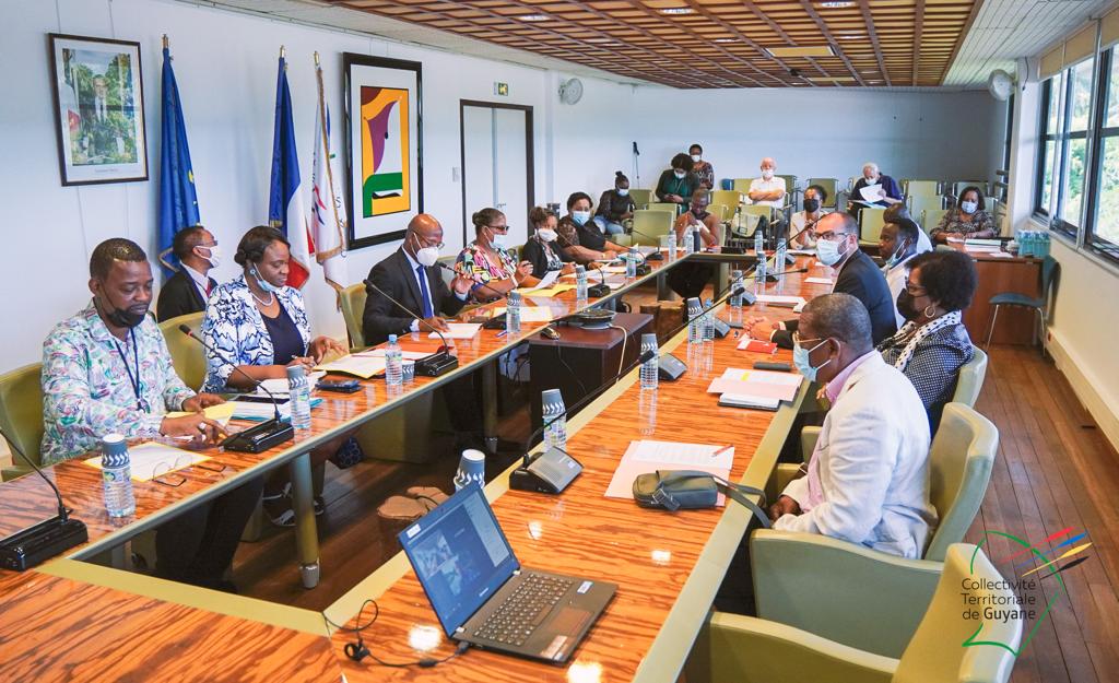 Afin d’échanger sur la mise en oeuvre du passe sanitaire en Guyane, la Commission Permanente de la Collectivité Territoriale de Guyane (CTG) s’est réunie en séance extraordinaire ce lundi 16 août 2021 sur convocation du Président Gabriel Serville.