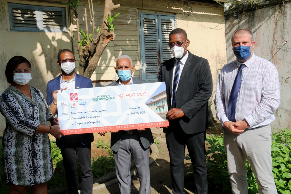 La Collectivité Territoriale de Guyane(CTG), lauréate du Loto du Patrimoine pour l’immeuble Franconie, recevait, à l’occasion des Journées Européennes du Patrimoine, un chèque de 400 000 euros de la Fondation du Patrimoine dans le cadre d’une cérémonie officielle.