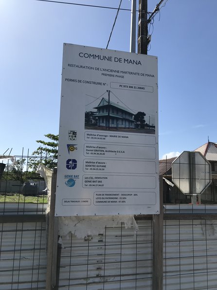 Édifice emblématique du bourg de Mana, cette ancienne maternité de style créole traditionnel, a servi jusqu’à la fin des années 1960. Elle s’est ensuite transformée en logement de fonction et a accueilli des services publics. Sa dégradation avancée a nécessité sa déconstruction intégrale. Le projet vise à le reconstruire à l’identique pour y héberger les services culturels municipaux.