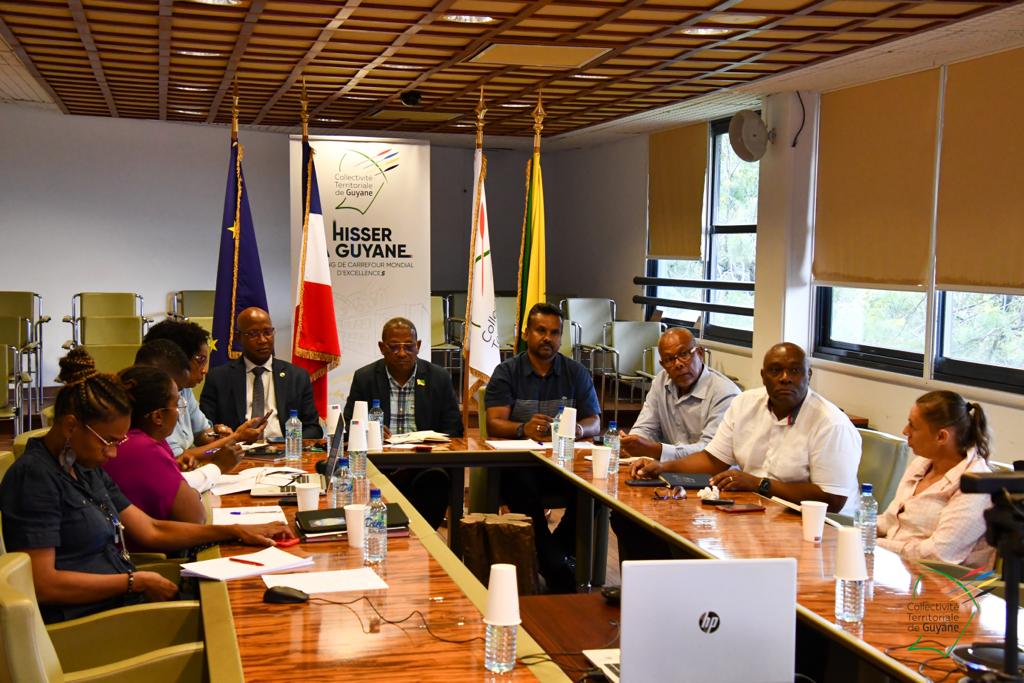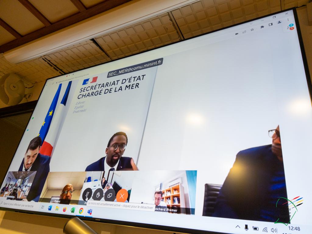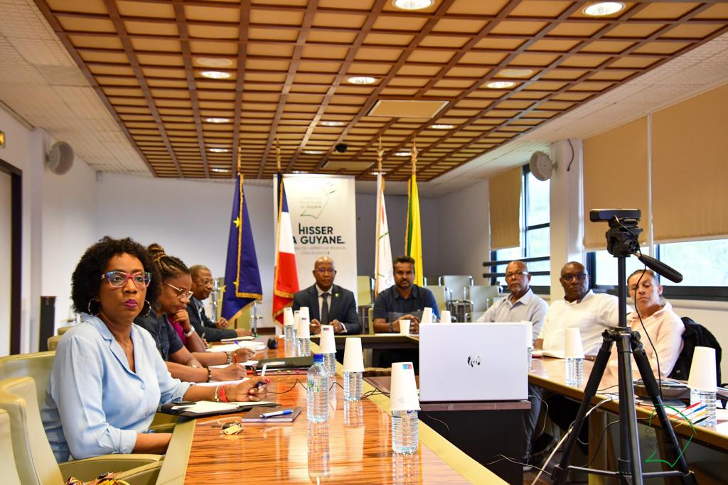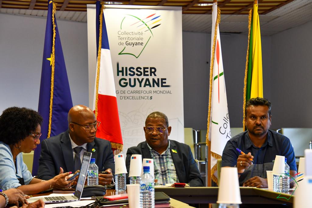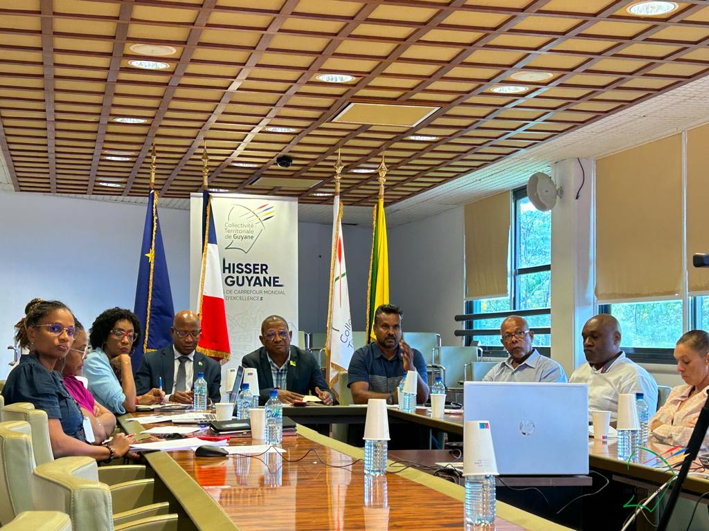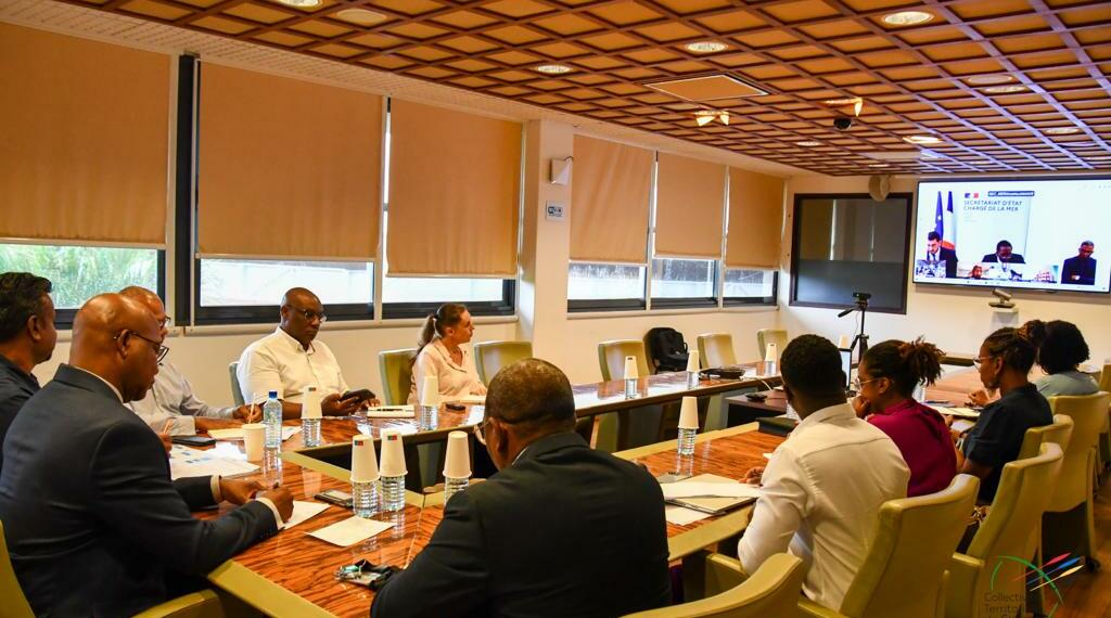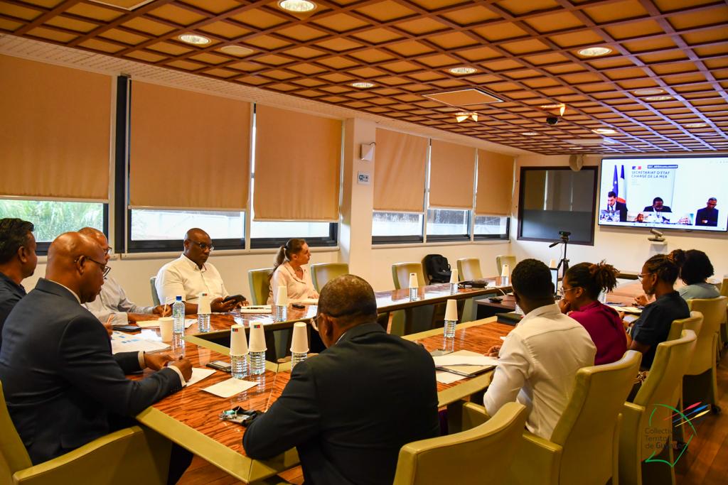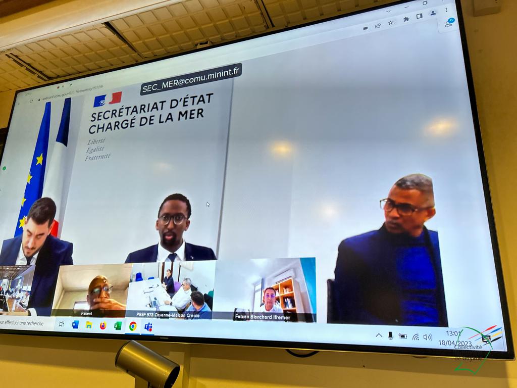 Une échange entre Gabriel Serville, président de la CTG et Hervé Berville, ministre délégué chargé de la Mer, autour des problématiques de la filière pêche en Guyane, se tenait ce mardi 18 avril 2023, en visioconférence, en présence de Roger Aron, vice-président délégué à la pêche, Christiane Barbe, conseillère territoriale déléguée à l’agroalimentaire, Léonard Raghnauth, président du Comité Régional des Pêches Maritimes de Guyane, d’acteurs de la filière, du sénateur Georges Patient, du député Jean-Victor Castor, des services de l’Etat, et d’IFREMER.