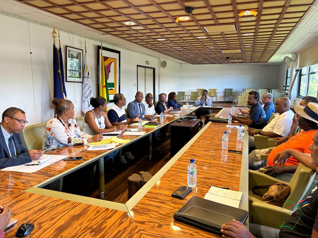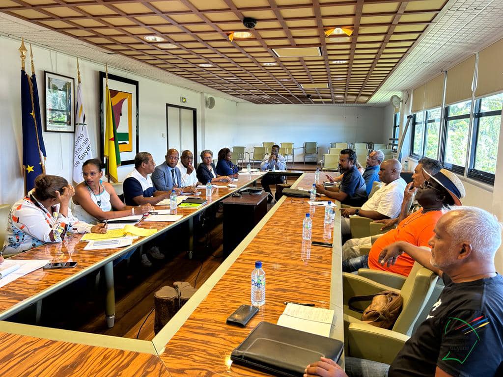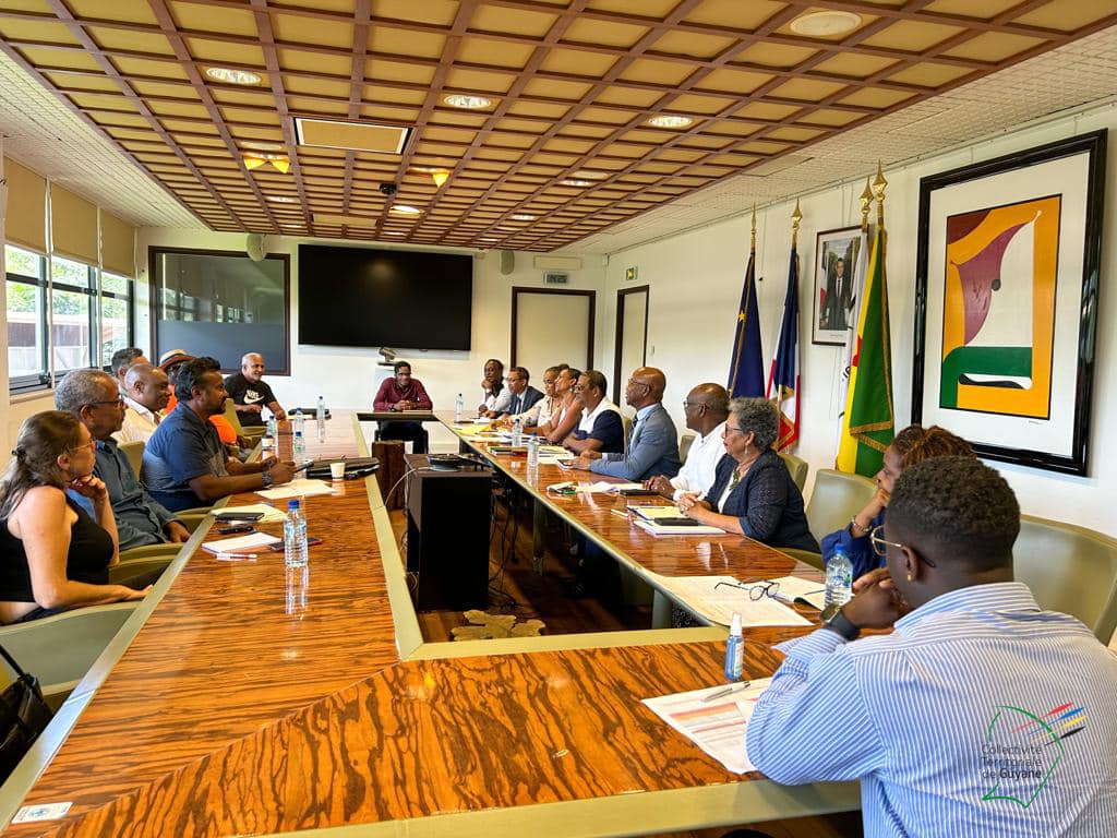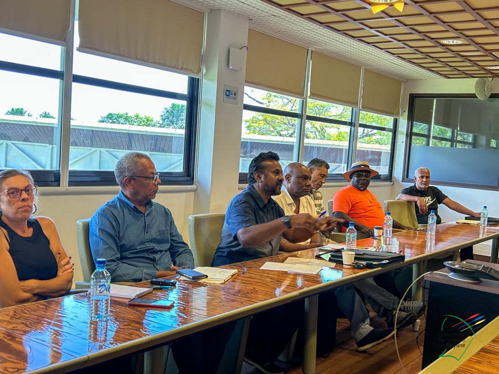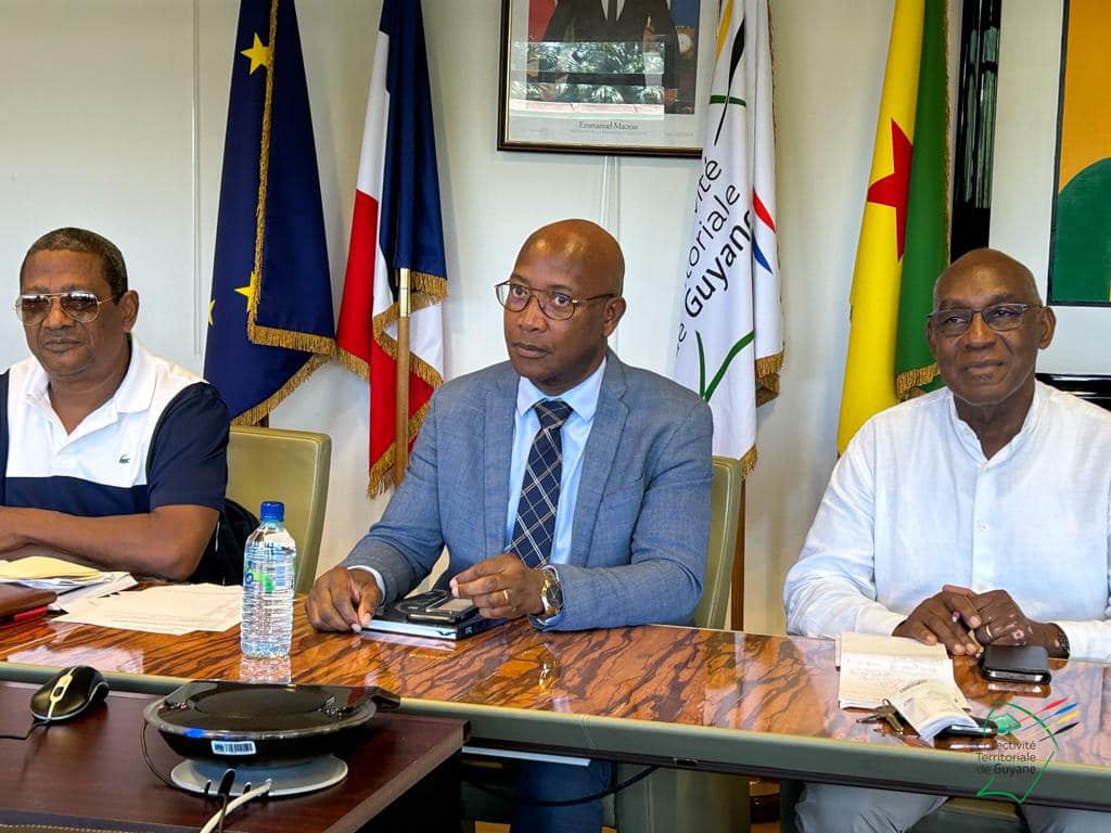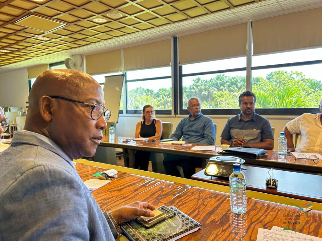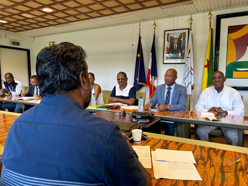 Suite à la forte baisse des ventes de vivaneaux rouges à l’export, une partie de la filière pêche se retrouve actuellement en grande difficulté. À ce titre, Gabriel Serville, président de la CTG, accompagné de Roger Aron, 7è vice-président délégué à la pêche recevait ce mardi 1er août 2023, Léonard Raghnauth, président du Comité Régional des Pêches Maritimes et des Élevages Marins de Guyane, en présence de plusieurs membres du comité, à l’hôtel de la CTG.