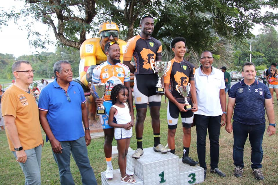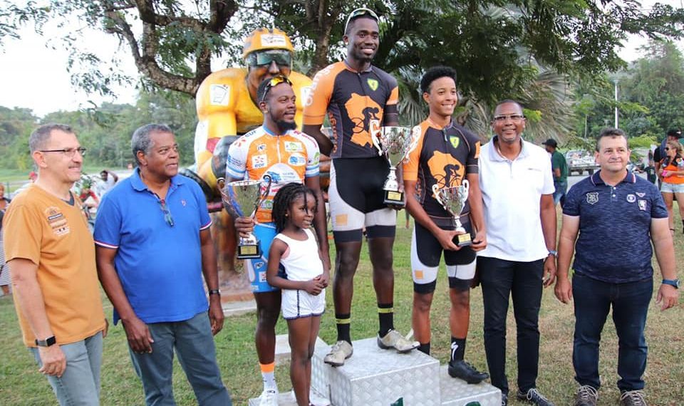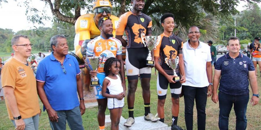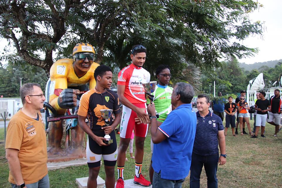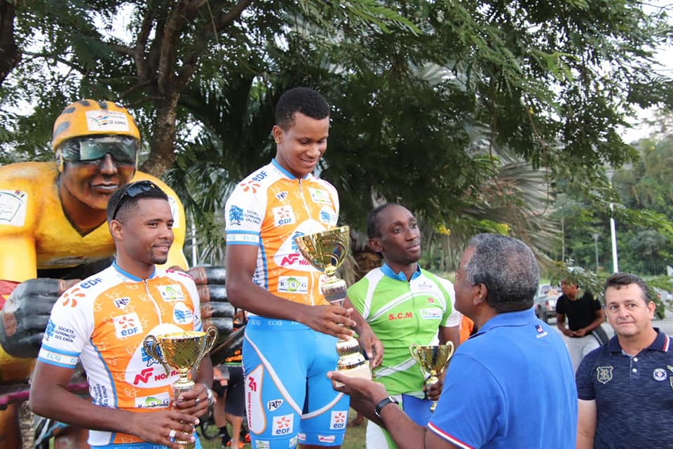 Le cycliste a reçu sa coupe des mains du 4e Vice-Président de la Collectivité Territoriale de Guyane, Jean-Claude Labrador, délégué au Sport.