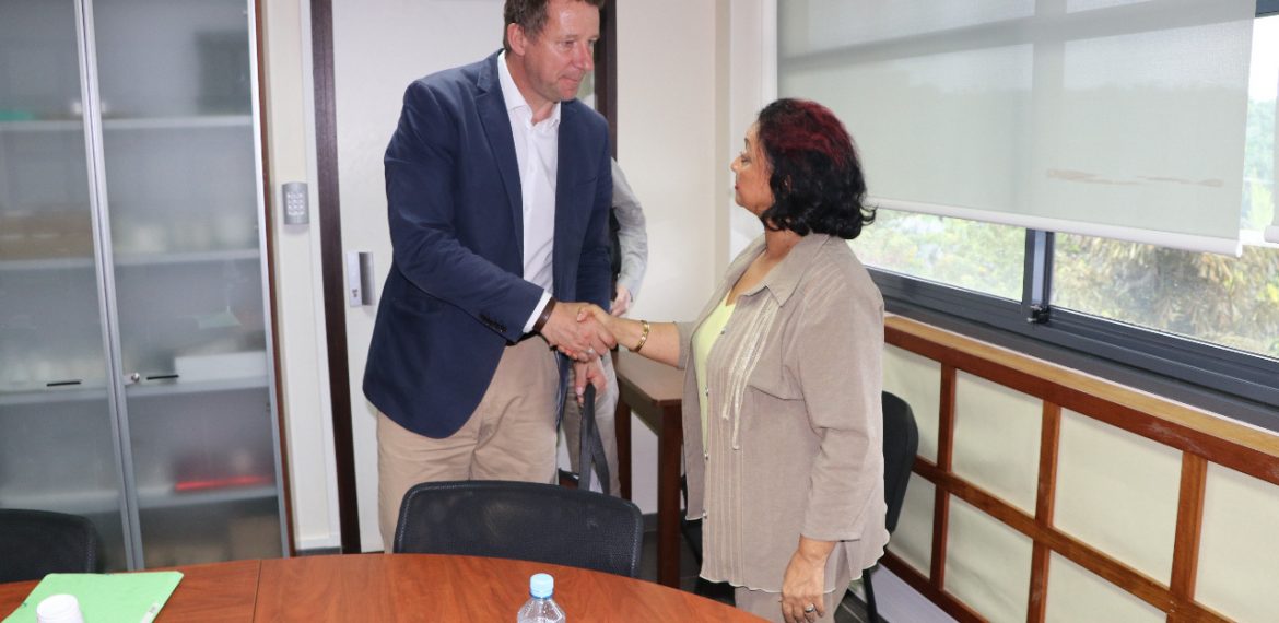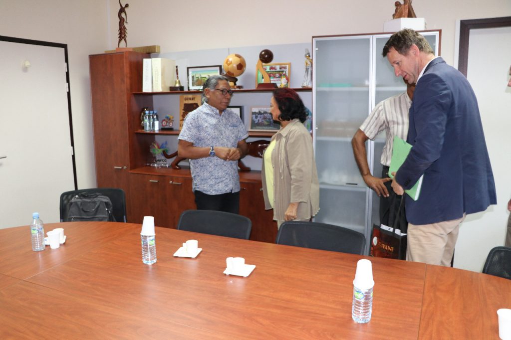Pour cette visite de courtoisie, il était accompagné par une délégation composée de membres du parti Guyane écologie Michel DUBOUILLE et Alexis TIOUKA, et de son attaché parlementaire Alexis BRAUD. Cette rencontre avait pour objet d’échanger sur les positions de la CTG quant aux dossiers miniers (or et pétrole).