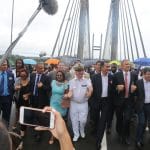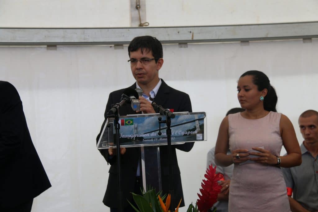 Le Président de la Collectivité Territoriale de Guyane n’a pas caché sa joie de voir enfin la structure surplombant l’Oyapock inaugurée et a fait le vœu que ce pont développe “la fraternité, l’amitié” qui existe déjà entre la France et le Brésil ainsi que “les échanges économiques et culturels”. Le Gouverneur de l’Etat de l’Amapá, a lui, tenu à rassurer la France sur l’avancée des infrastructures côté brésilien en indiquant que tout sera mis en oeuvre pour que le poste de Douane de l’autre côté du fleuve soit achevé et effectif d’ici l’été. Le Maire de Saint-Georges, Georges Elfort n’a pas boudé son plaisir en entamant son discours en portugais avant de le poursuivre en français pour inviter les entreprises à se saisir de cette opportunité économique. Les parlementaires eux ont indiqué qu’il fallait maintenant qu’ils continuent à travailler pour la levée des freins à une traversée sans contraintes, en évoquant notamment la surpression des visas. Enfin, le Préfet de Guyane, Martin Jaeger a conclu cette salve de discours côté français sur une note d’humour en faisant le voeu, s’agissant des échanges culturels et économiques entre les deux pays, que “la libération du pont libère la saucisse calabresa“.