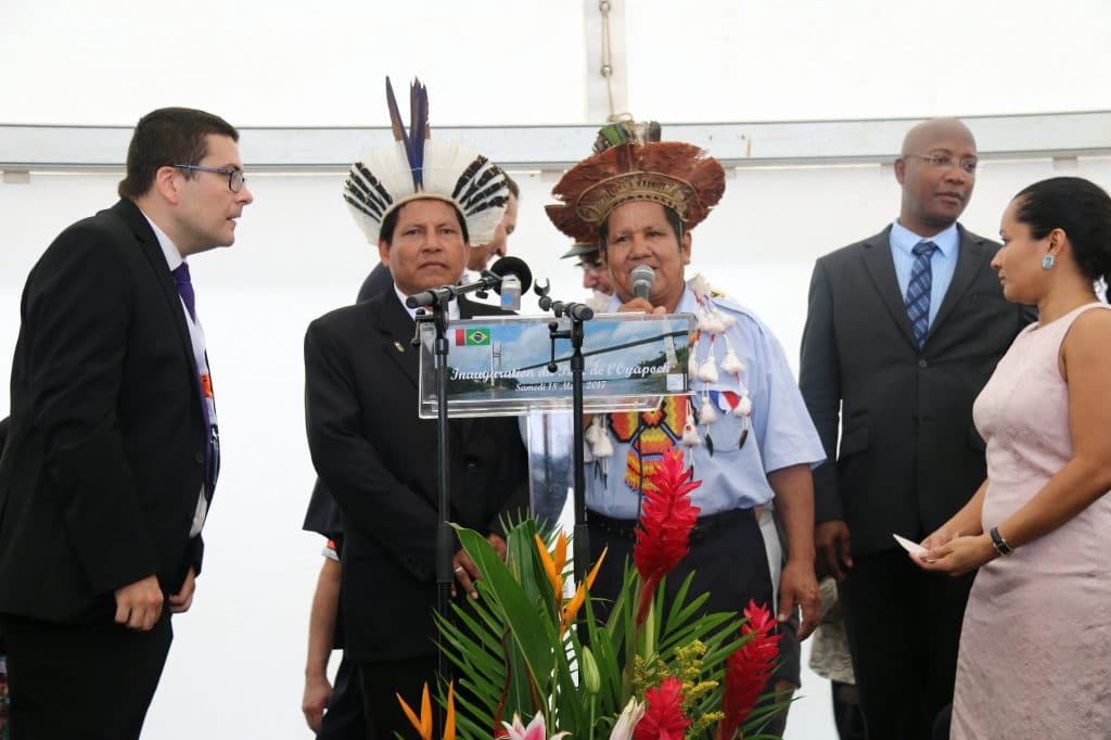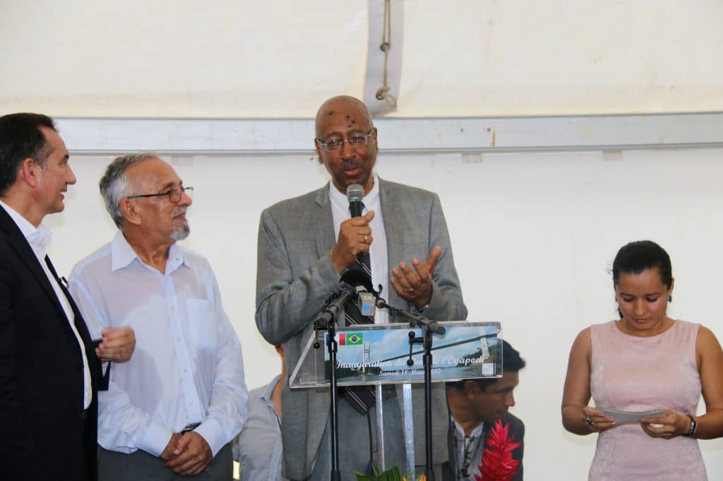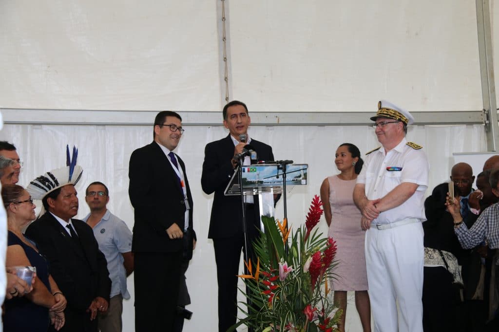 Le traditionnel coupé de ruban achevé, les officiels français et brésiliens ont rejoint la partie française main dans la main pour la suite des festivités. Un moment aussi symbolique que solennel qui a ensuite laissé place aux discours. Côté français, le Président de la CTG, Rodolphe Alexandre, le Maire de Saint-Georges, Georges Elfort, le député Gabrielle Serville, le Sénateur Georges Patient et enfin le Préfet de Guyane, Martin Jaeger se sont succédés. Côté Brésil ils ont aussi été nombreux à prendre le micro en ce jour historique : le Gouverneur de l’Etat de l’Amapá , Waldez Goes, les Sénateurs João Capiberibe, Randolphe Rodrigues, Davi Alcolumbre, le Député fédéral de l’Etat de l’Amapá, Borges Cabuçu et enfin la Préfète d’Oiapoque, Maria Orlanda.