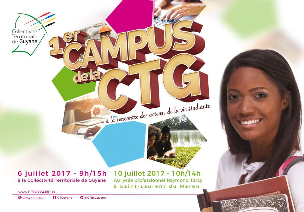 Dans le cadre du lancement de la campagne des aides territoriales pour l’enseignement supérieur, la Collectivité Territoriale de Guyane propose deux journées “Campus de la Collectivité Territoriale” dédiées à une rencontre entre les bacheliers et les étudiants avec tous les acteurs de la vie étudiante en Guyane : services de la CTG, université, organismes de formation professionnelle, banques, mutuelles…