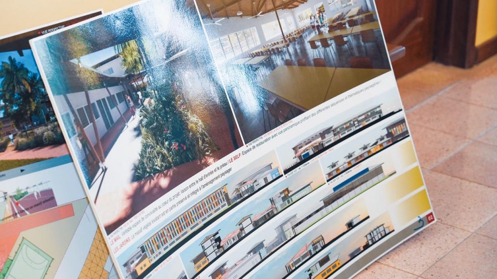 Après les présentations du Directeur de l’Infrastructure, Équipements et Appui aux Collectivités et de l’équipe de maîtrise d’œuvre, lauréate du concours d’architectes, le film présentant le futur Collège a été diffusé. Le public a ainsi pu découvrir : la vue aérienne du projet, l’entrée sécurisée, le mail végétalisé, la vie scolaire, le préau, le jardin, les équipements sportifs, les logements de fonction.