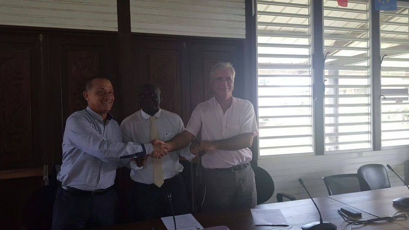 Après cette présentation, le Président de l’Assemblée de Guyane était attendu à la Mairie pour la Signature d’une Convention liant la CTG, la mairie de Maripasoula et le GEIQ BTP Guyane. Il s’agit d’une clause d’insertion des jeunes de la commune dans tous les chantiers publics qui seront initiés par la CTG et/ou la Commune de l’Ouest et qui ira de pair avec un processus de pré-qualification de ces jeunes dans le domaine du BTP. Il s’agit là d’un accord majeur pour l’insertion et la qualification de la jeunesse de la commune de l’intérieur.