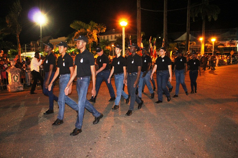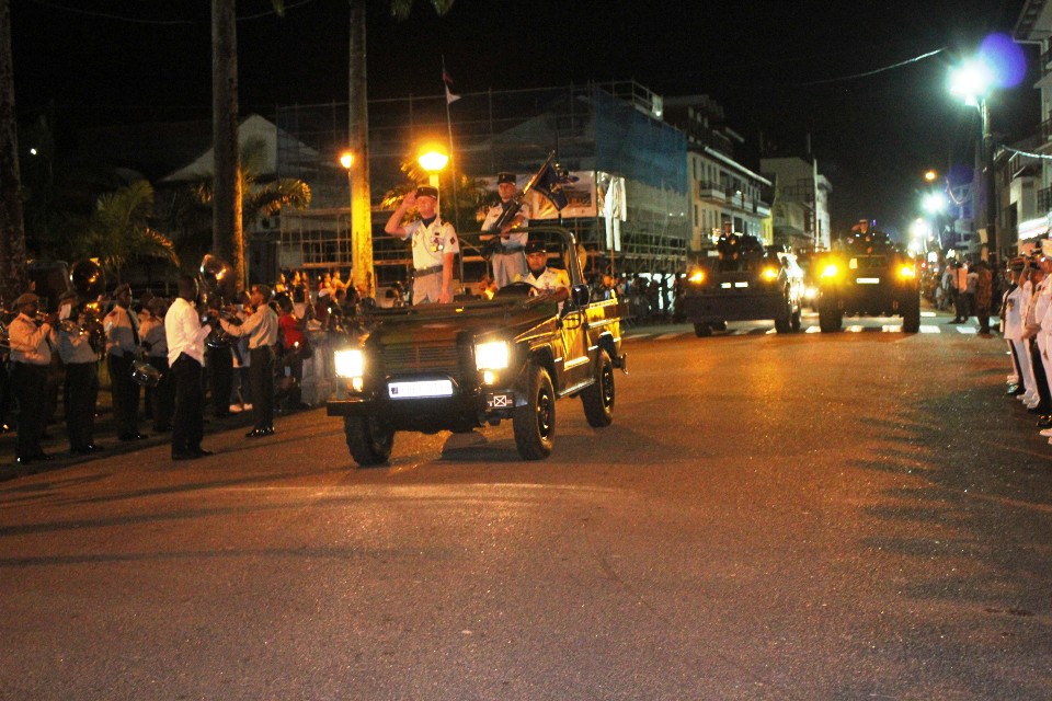 Pour cette commémoration du 14 juillet, on notera la participation de la Gendarmerie Nationale, la Police Nationale, la Police aux Frontières, des Sapeurs-Pompiers français et brésiliens, des Cadets de la défense, tous défilant au rythme de la musique militaire surinamaise devant une foule visiblement conquise.