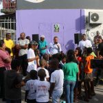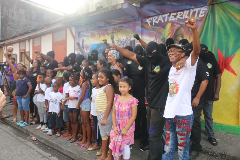 Après avoir assisté à la narration d’un conte sur la fraternité par Rémy Aubert, le public s’est ensuite rendu rue du Docteur Arthur Henri pour l’inauguration de la fresque murale réalisée par Abel Adonaï, symbolisant l’ensemble du mouvement social de grande ampleur mené durant les mois de mars et d’avril 2017, avec notamment un rappel de la marche du 28 mars.