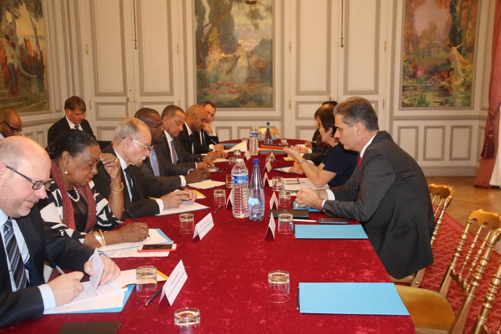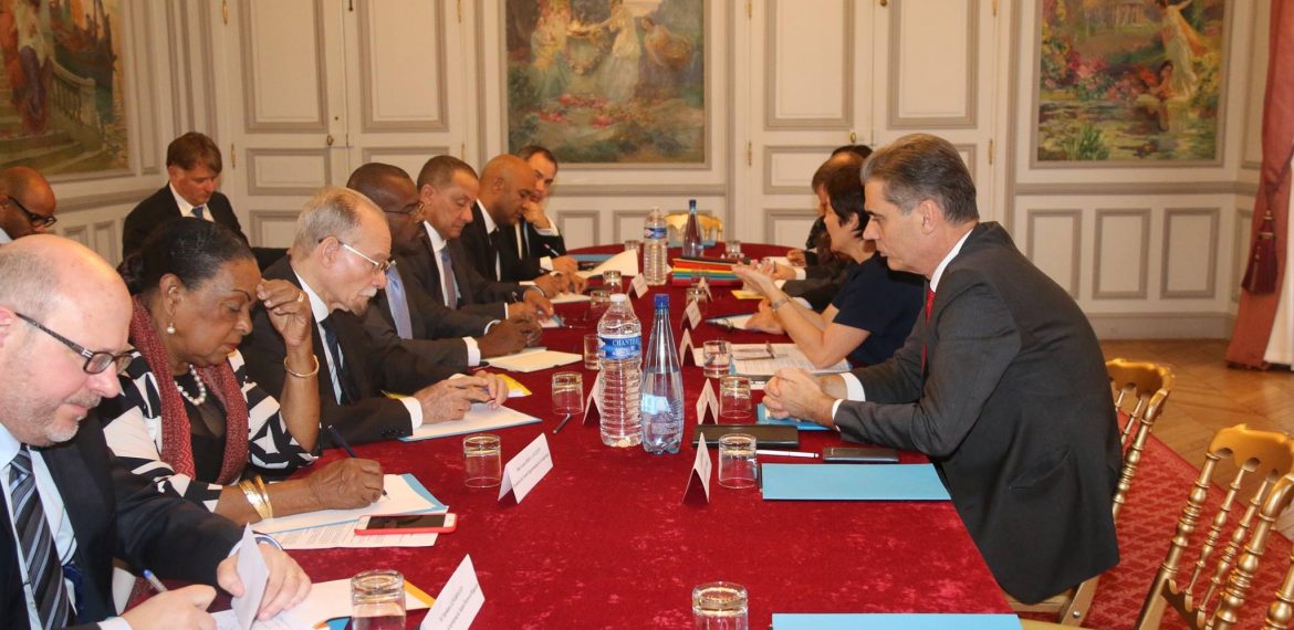 Le Président de la CTG, Rodolphe Alexandre participait ce mardi 21 novembre 2017, à une reunion au Ministère des Outre-Mer, à Paris, avec la Ministre Annick Giradin, aux côtés du Président de la Collectivité Territoriale de Martinique, Alfred Marie-Jeanne, du Président du Conseil Régional de Guadeloupe, Ary Chalus, de la Présidente du Conseil Départemental de Guadeloupe, Josette Borel-Lincertin, du Président du Conseil Territorial de Saint-Pierre et Miquelon, Stephane Lenormand, du Vice-Président du Conseil Général de la Reunion, Serge Eric Hoareau et du Président du Conseil Territorial de Saint-Martin, Daniel gibbs.