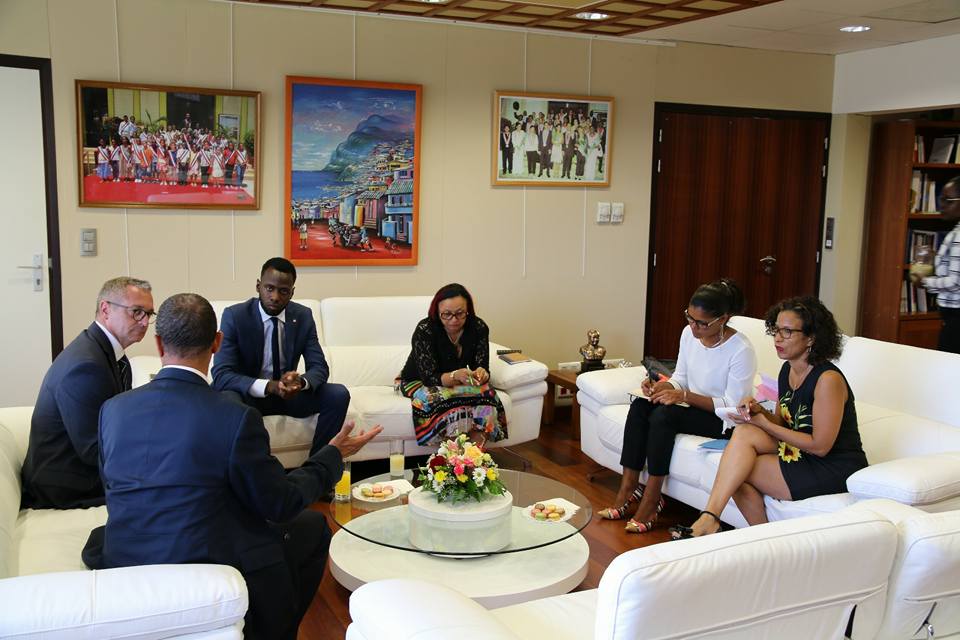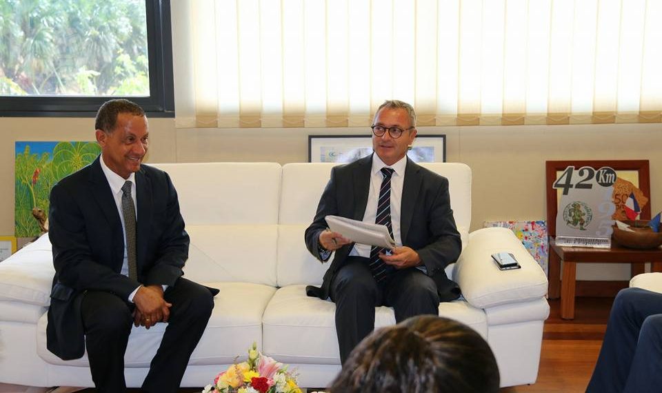 Le Président de la Collectivité Territoriale de Guyane, Rodolphe Alexandre a reçu aujourd’hui à l’Hôtel Territorial, le nouveau Préfet de Guyane, Patrice Faure, qui a pris ses fonctions ce lundi 28 août 2017, succédant ainsi à Martin Jaeger qui avait été nommé en janvier 2016, en présence de ses 1ère, 3ème et 7ème Vice-Présidentes, respectivement Hélène Sirder déléguée au Mines, au Développement durable et à l’Energie, Isabelle Patient, déléguée à l’Aménagement du Territoire, au Logement et au Transport et Audrey Marie, en charge de la Petite enfance et de la Jeunesse et également du Conseiller Territorial et Député de la 2ème circonscription de la Guyane, Lénaïck Adam.