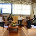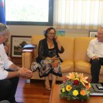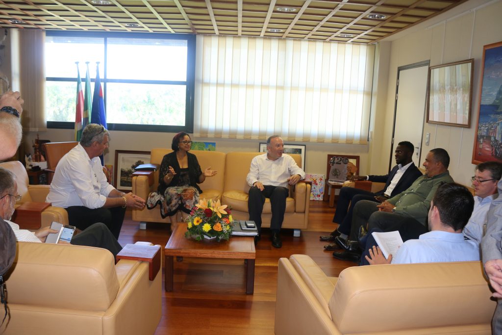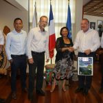 Hélène Sirder, 1ère Vice-Présidente déléguée au développement durable, aux mines et à l’énergie ; Denis Burlot, 2è Vice-Président délégué au développement économique et à la fiscalité, Boris Chong-Sit, Conseiller territorial et Lenaïck Adam, Conseiller territorial, rencontraient, au nom du Président de la CTG Rodolphe Alexandre, ce mercredi 27 juillet 2016, Pierre Gattaz, le Président du Mouvement Des Entreprises de France (MEDEF) National et Stéphane Lambert, Président du MEDEF Guyane, afin d’échanger sur la situation économique actuelle de la Guyane. Une démarche qui visait notamment à partager la vision du développement économique durable de la Guyane perçue par chacune.