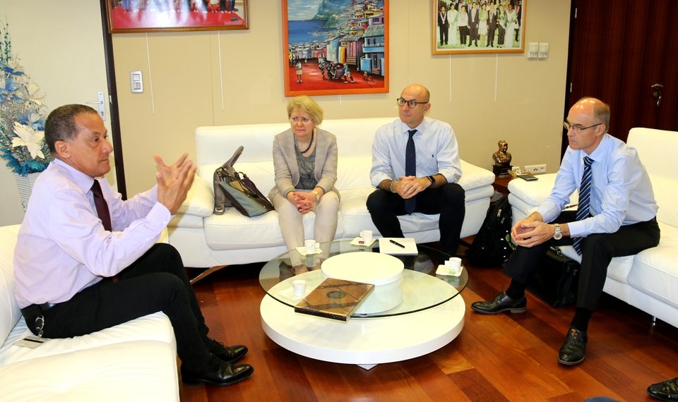 En mission en Guyane du 6 au 9 février, la Présidente de l’IEDOM (Institut d’Emission des Départements d’Outre-mer), Marie-Anne Poussin-Delmas accompagnée du Directeur Général de l’IEDOM, Philippe Lacognata et Yann Caron, Directeur de l’IEDOM Agence de Guyane, a été reçue ce mardi 6 février 2018 par le Président de la CTG (Collectivité Territoriale de Guyane) Rodolphe Alexandre et le conseiller territorial