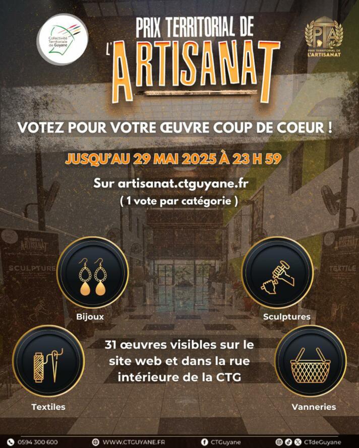 La Collectivité Territoriale de Guyane a lancé la 1re édition du Prix Territorial de l’Artisanat, un concours visant à valoriser les talents et le savoir-faire des artisans locaux.