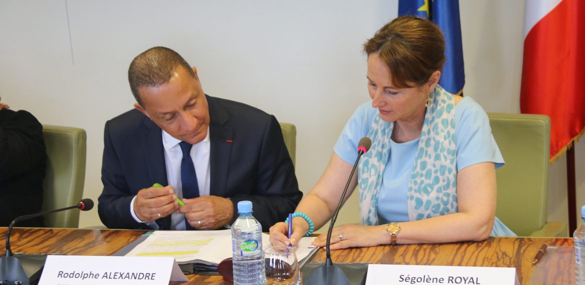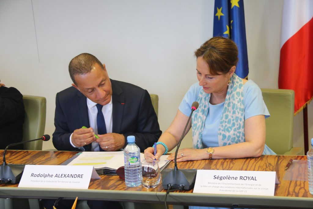Ce vendredi 17 mars 2017, la Programmation Pluri-annuelle de l’Energie (PPE) a été signée par la Ministre de l’Environnement, de l’Energie et de la Mer, Ségolène Royal, chargée des relations internationales sur le climat à l’hôtel Territorial. Ce document qui définit la stratégie à mettre en place pour couvrir les besoins énergétiques de la Guyane à l’horizon 2030 avait été adopté le 10 février par les élus de la Collectivité Territoriale de Guyane.