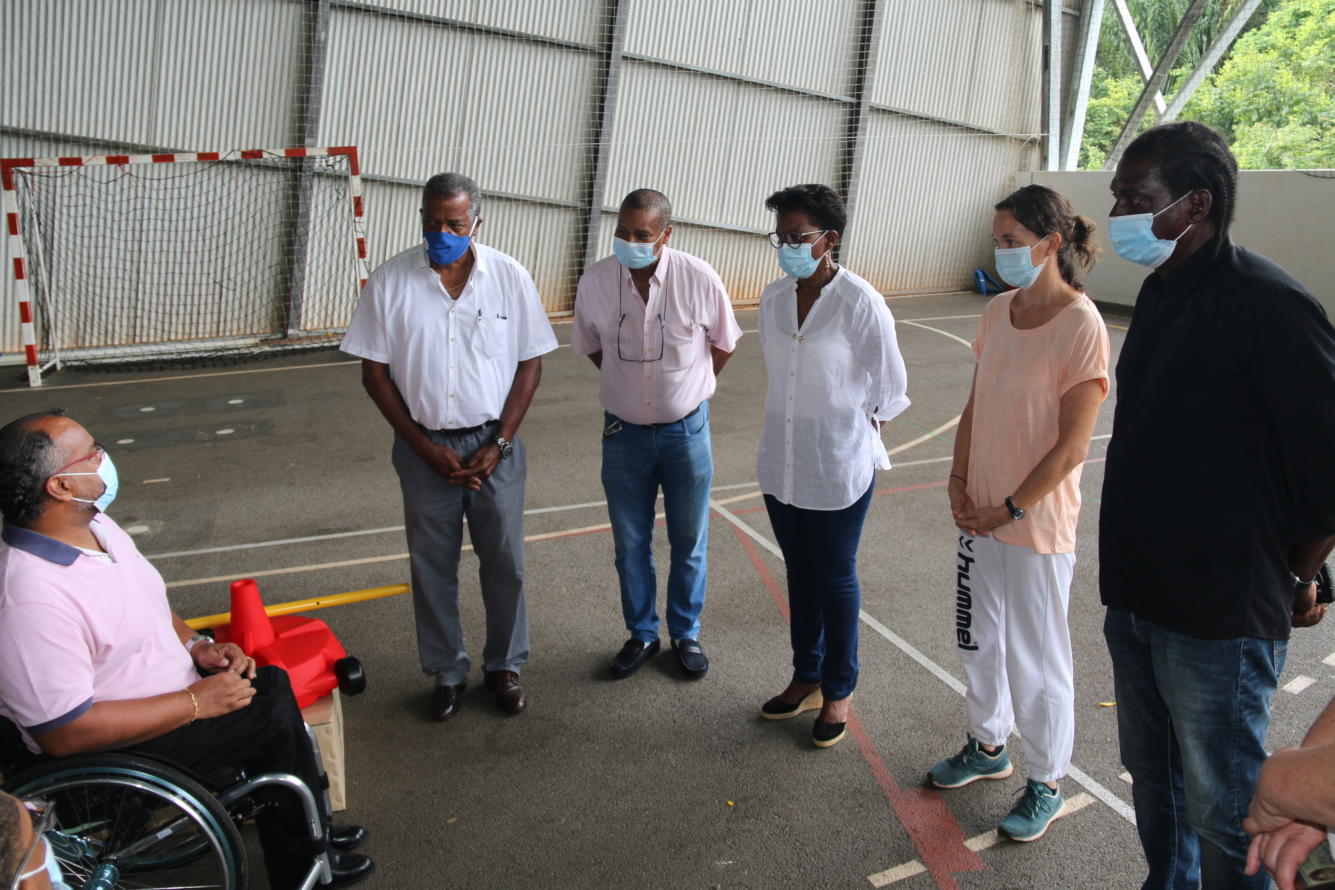 La remise de matériels a eu lieu ce mardi 17 novembre 2020 sur le plateau sportif de l’établissement en présence d’Anak Pioche et Emmanuel Hodebourg, tous deux vice-présidents du Comité Handisport, de l’équipe éducative de l’établissement (principal, principale adjointe, coordinatrice ULIS, professeur d’EPS) et des élèves bénéficiaires.