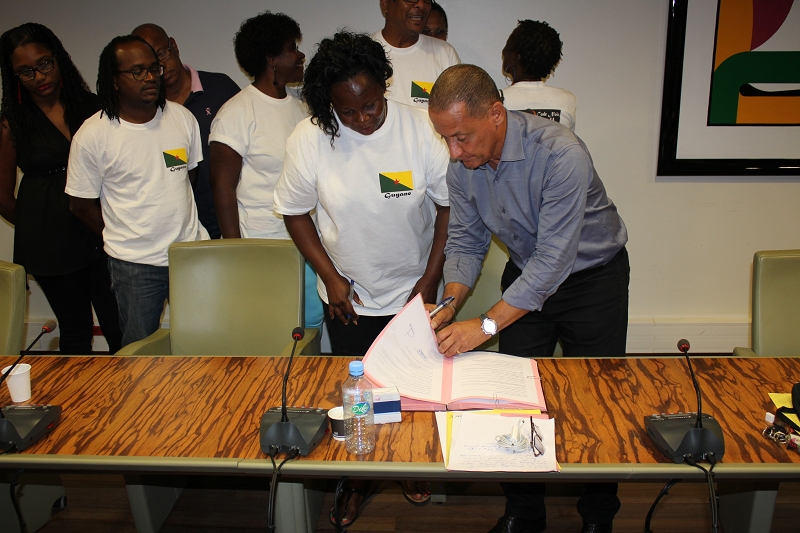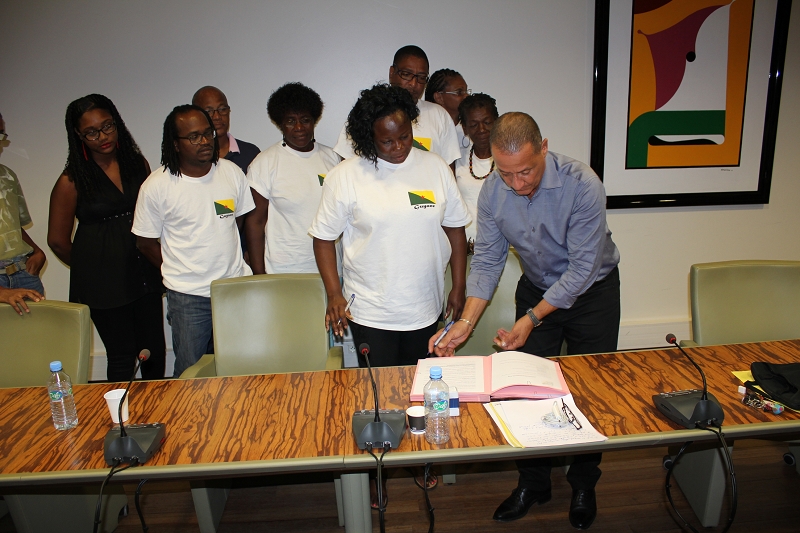 Après que les deux parties aient trouvé un terrain d’entente sur l’ensemble des points du cahier de revendications, le Président de la Collectivité Territoriale de Guyane, Rodolphe Alexandre, et le syndicat UTG-CGT ont signé, ce vendredi 16 septembre 2016, le protocole d’accord mettant fin à la grève initiée le 8 septembre dernier.