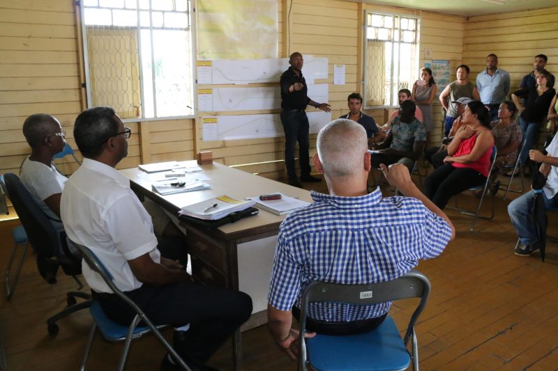 Lundi 6 juin 2016, une délégation de la Collectivité Territoriale de Guyane (CTG) composée des conseillers territoriaux François Ringuet et Anne-Marie Read, de collaborateurs de cabinet, et des techniciens de la voirie s’est rendue au village de Javouhey à la rencontre de la population Mananaise afin de présenter le projet de réfection des routes départementales 9 et 10 et de répondre à leurs interrogations.