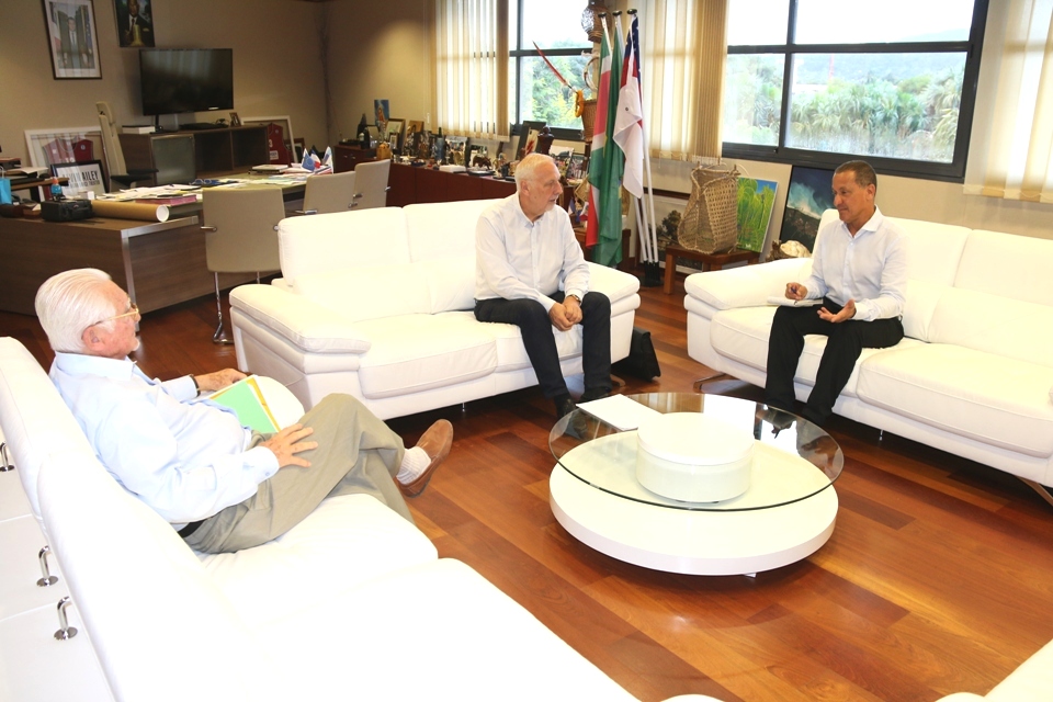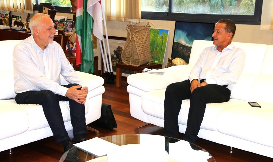 Deux semaines après la dissolution officielle en conseil des ministres du conseil municipal de Régina -Approuague-Kaw (Guyane) et sa mise sous tutelle, l’administrateur provisoire de la commune, Philippe Griset chargé de la gestion des affaires courantes, en vue de nouvelles élections, a rendu une visite de courtoisie au Président de la Collectivité Territoriale de Guyane, Rodolphe Alexandre en présence du Conseiller Territorial, Pierre Désert, ex maire de cette commune, ce vendredi 23 février 2018, à l’hôtel territorial à Cayenne.