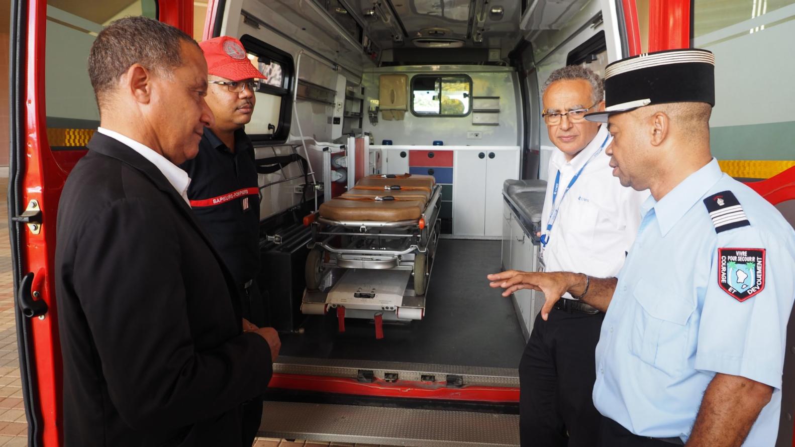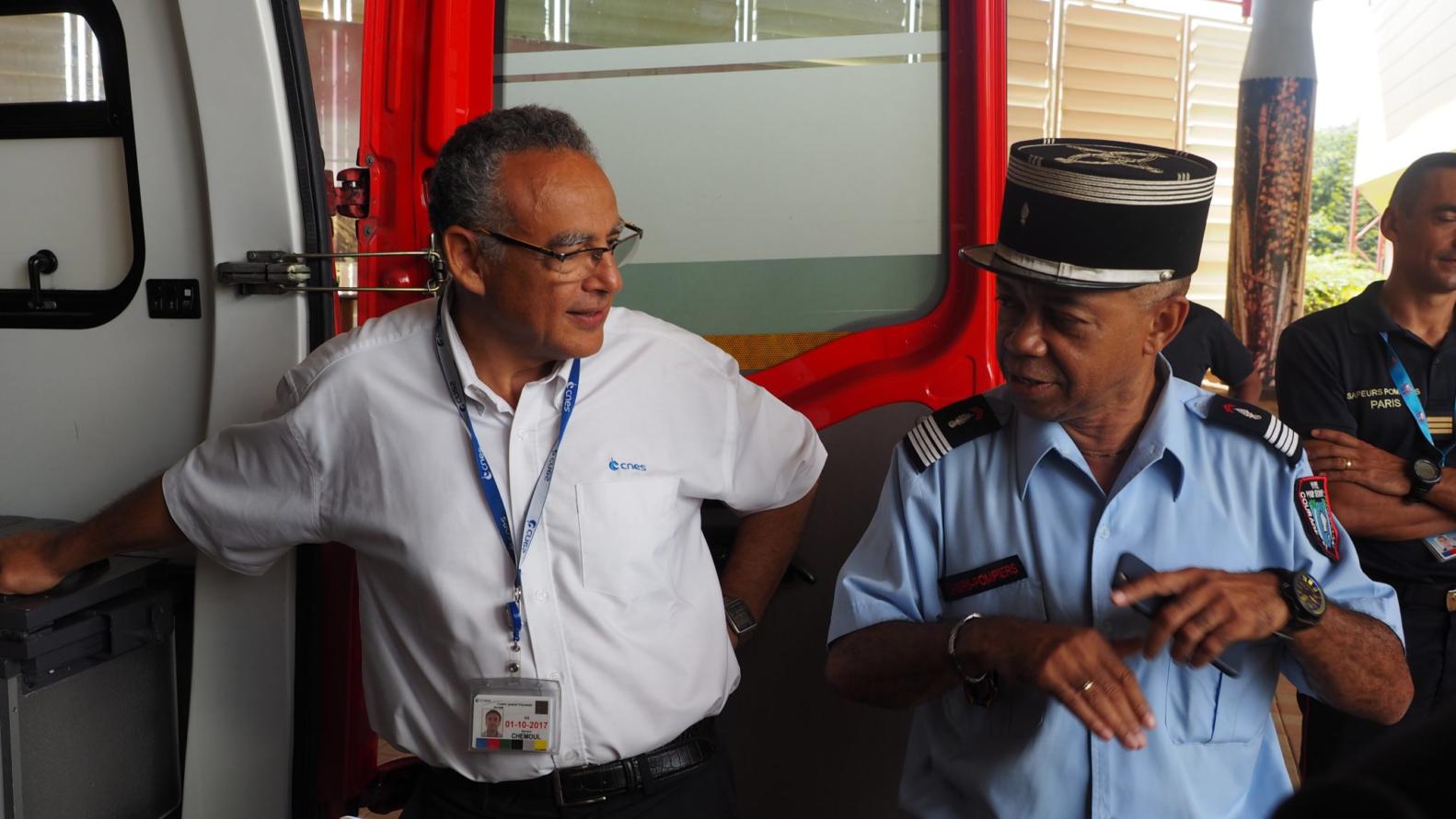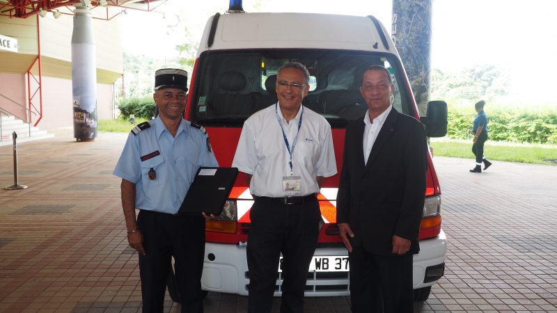 Ce mardi 19 juillet 2016 au Centre spatial guyanais (CSG) de Kourou, un véhicule de type VASV (Véhicule d’Assistance et de Secours aux Victimes) en provenance du Service Départemental d’Incendie et de Secours (SDIS) d’Indre-et-Loire a été remis au SDIS de Guyane, en présence du Président de la Collectivité Territoriale de Guyane, Rodolphe Alexandre, du Directeur du CSG, Bernard Chemoul, et du Directeur du SDIS de Guyane, le Colonel Félix Antenor-Habazac.