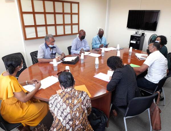 Gabriel Serville, président de la Collectivité Territoriale de Guyane, et Serge Long Him Nam, Conseiller Territorial en charge des Langues et Cultures Régionales, ont rencontré ce samedi 19 février 2022, une délégation de Chercheurs de l’Université de Guyane autour de diverses questions relatives aux langues et cultures régionales.