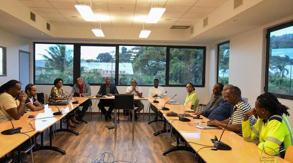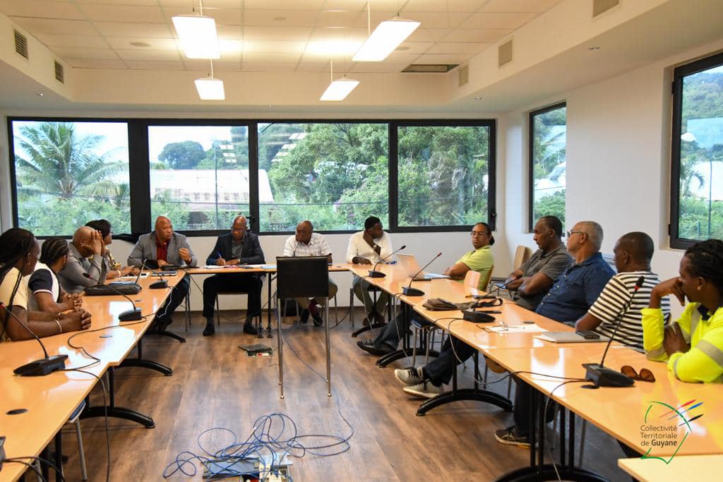Plusieurs représentants du Groupement des Employeurs de la Manutention Guyanaise étaient reçus par Gabriel Serville, président de la CTG, accompagnés d’élus territoriaux, ce lundi 8 janvier 2024, à l’Hôtel Territorial.