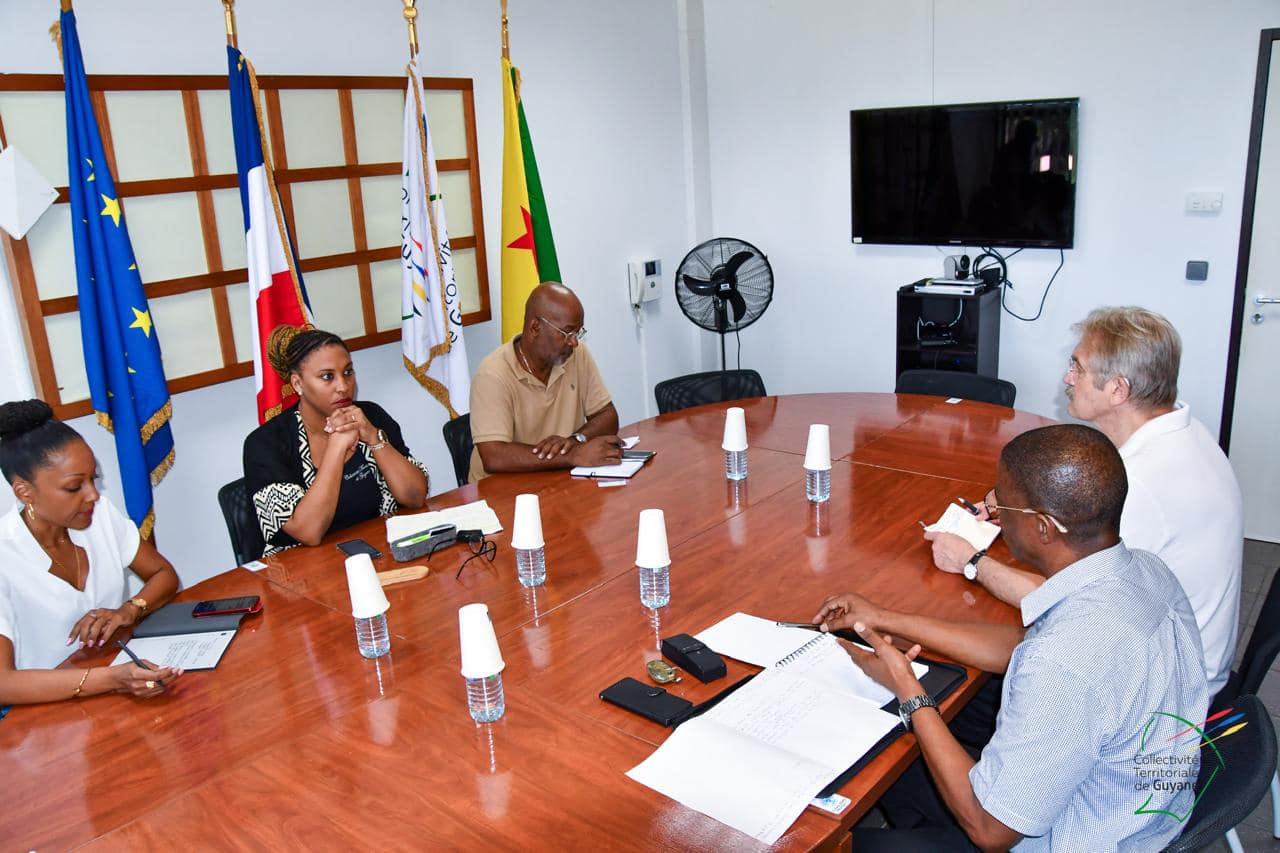 Présent en Guyane dans le cadre de ses missions, Frédéric Thiriez, ancien président de la Fédération Française de Football était reçu à l’Hôtel Territorial, ce samedi 3 août 2024, accompagné du président de la ligue de football de Guyane, Marcel Bafau.