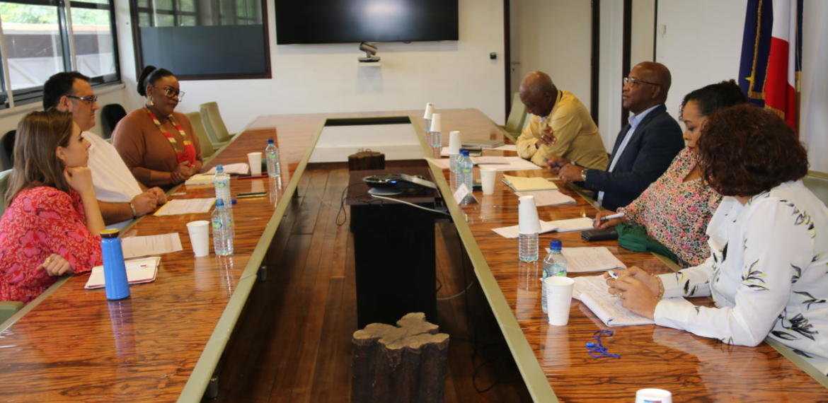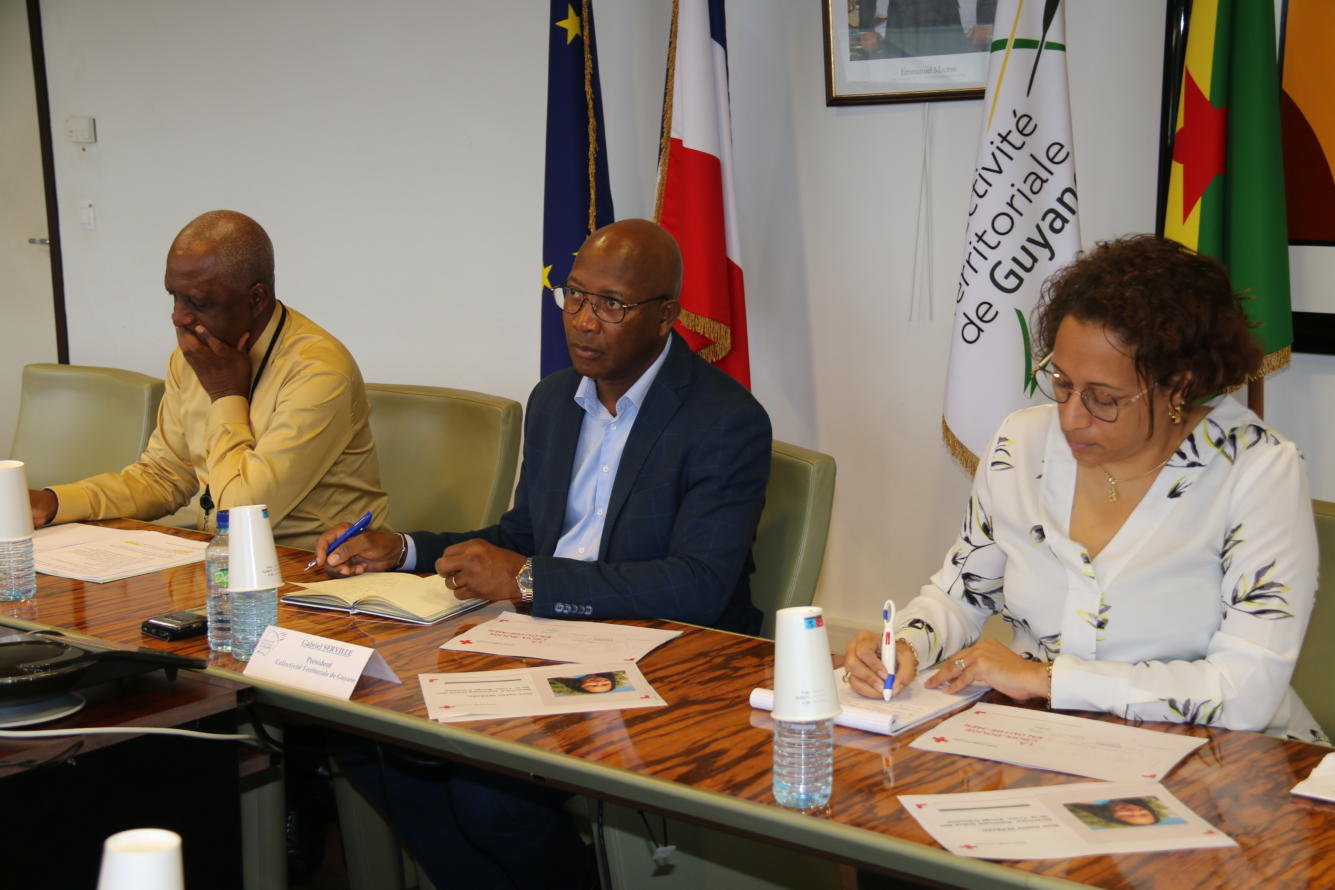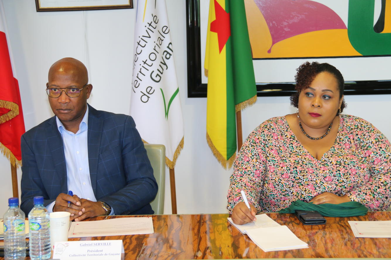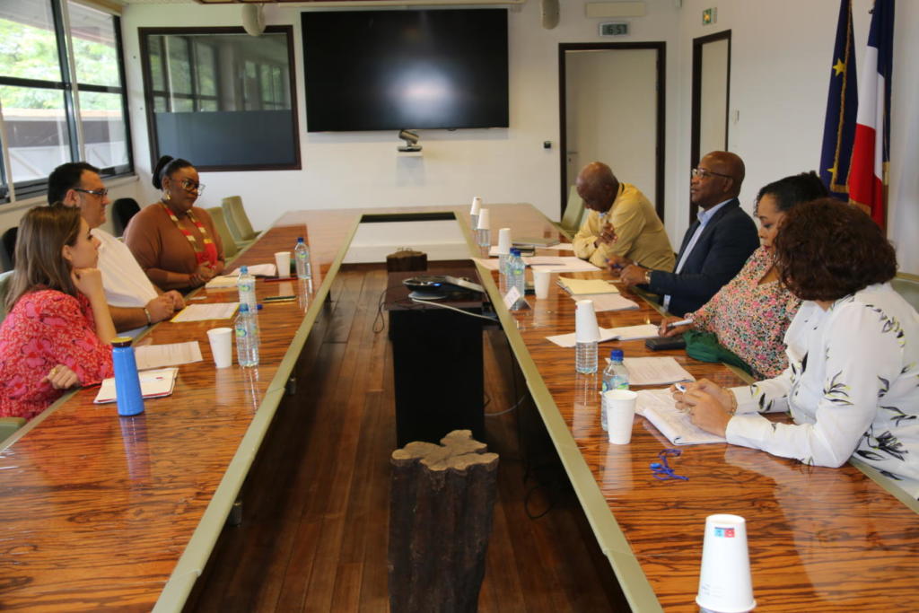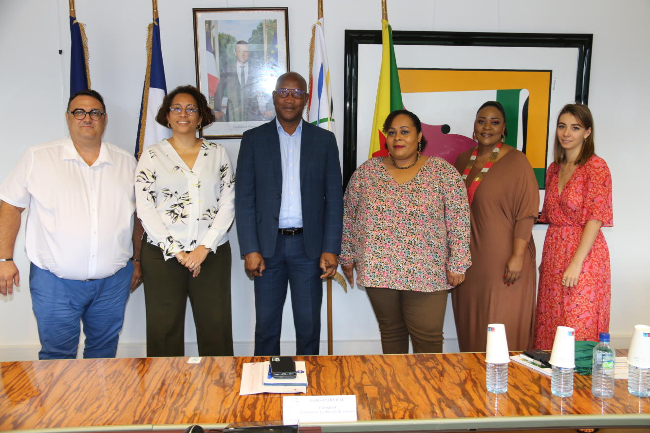 Ce mercredi 11 janvier 2023, Gabriel Serville, président de la Collectivité territoriale de Guyane (CTG) et Samantha Cyriaque, 8ème vice-présidente de la CTG déléguée à l’Autonomie et au Handicap, rencontrait Jérôme Domec, directeur territorial de la croix-rouge française, Chloé Metz, directrice de l’offre sanitaire, Tania Peter, directrice du pôle asile.