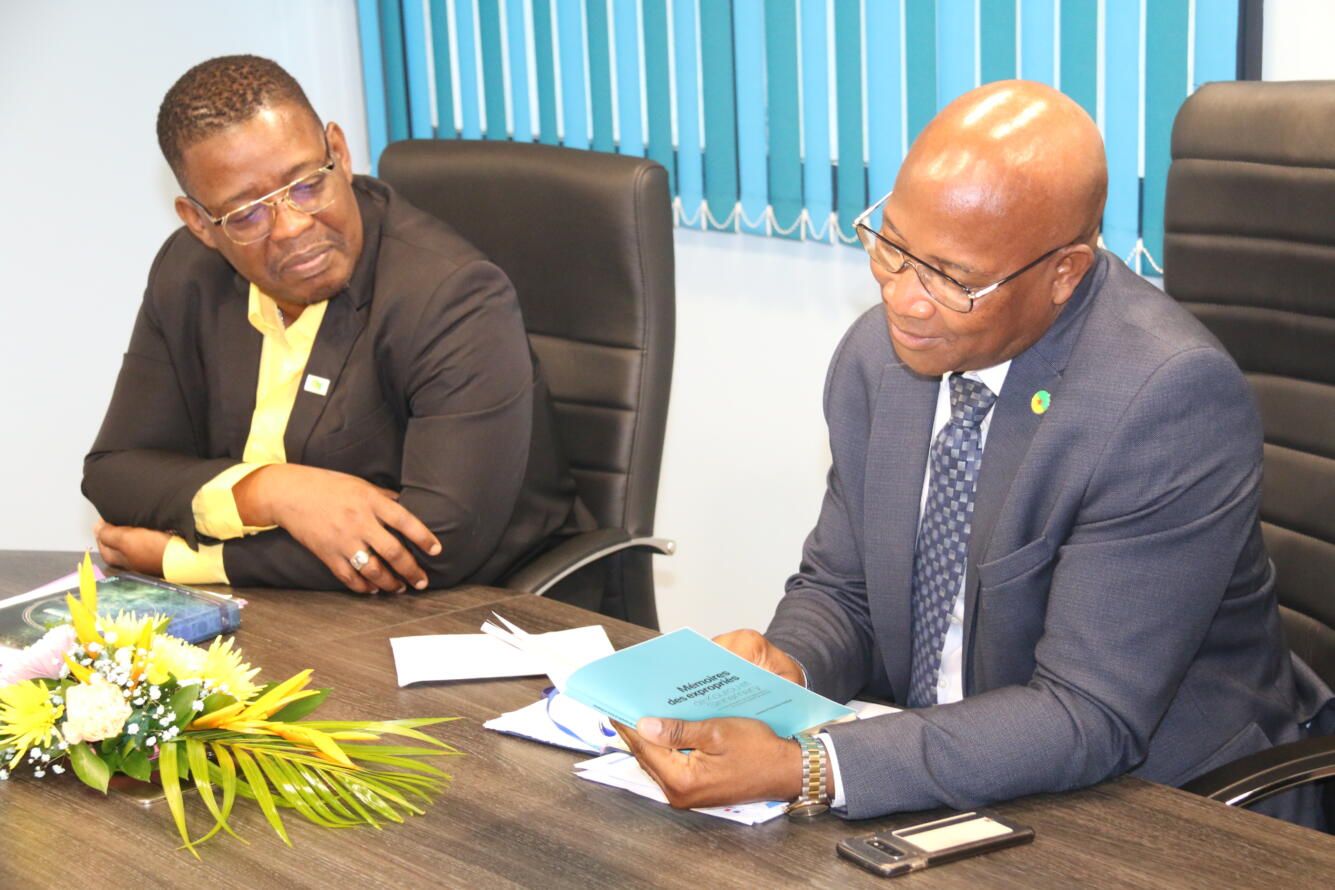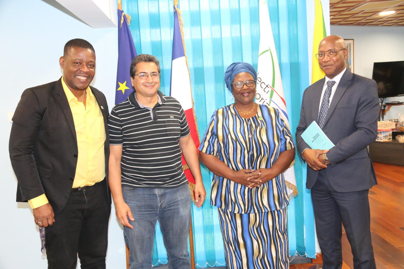 Ce mardi 25 avril 2023, Gabriel Serville président de la Collectivité territoriale de Guyane (CTG) et Emmanuel Prince, 11è vice-président en charge de la Culture, du Patrimoine et de la Transmission, rencontrait Juliana Chocho-Dufail, autrice du livre “Mémoires des expropriés “, venue présenter ce dernier au président de la CTG et lui en offrir un exemplaire.